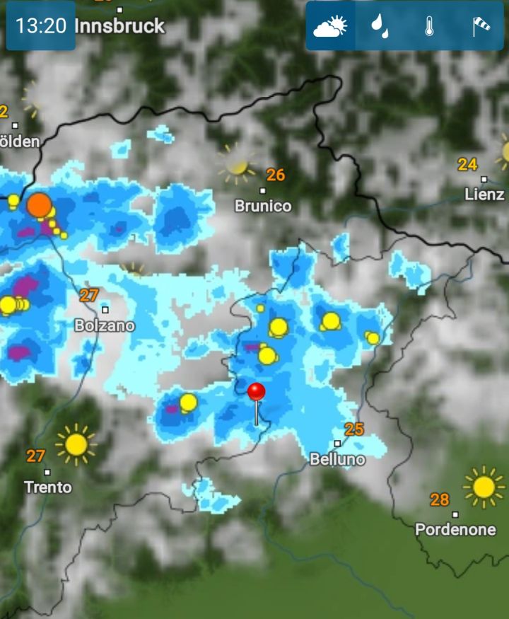 V údolí ve městě Agordo je příjemně tepleji, 24°C ukazuje palubní teploměr.