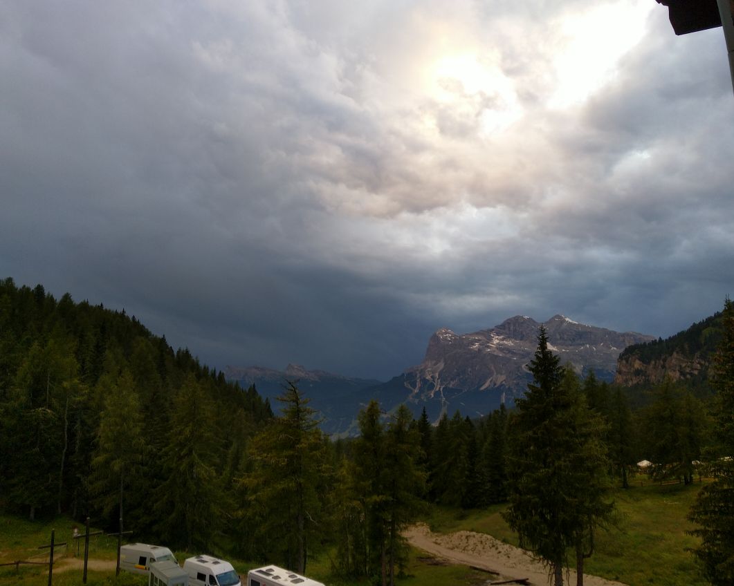 Cestou dolů déšť pomalu ustává a na passo Staulanza už je obloha protrhaná.