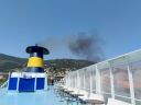 Po nahození hlavního motoru vyvalil se z komína černý oblak emisní normy Euro 0, na horní palubu dopadlo několik černých vloček velikosti pěticentu.