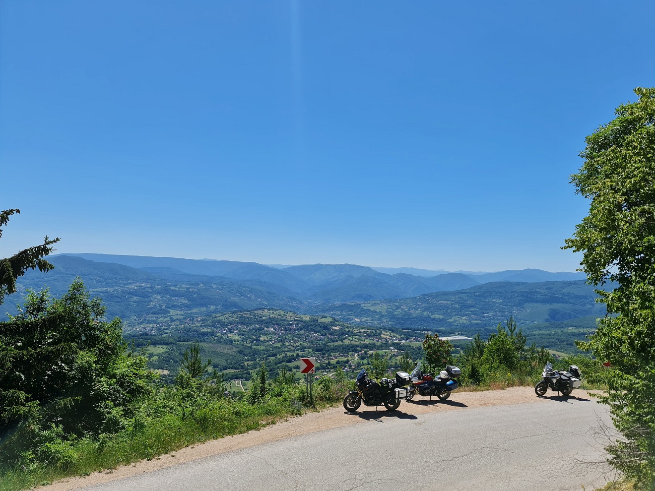 Přebírám iniciativu, na jeden zátah předjíždím oba kolegy a dva osobní automobily, abych za kilometr a něco zastavil u vyhlídky na Slano jezero.
