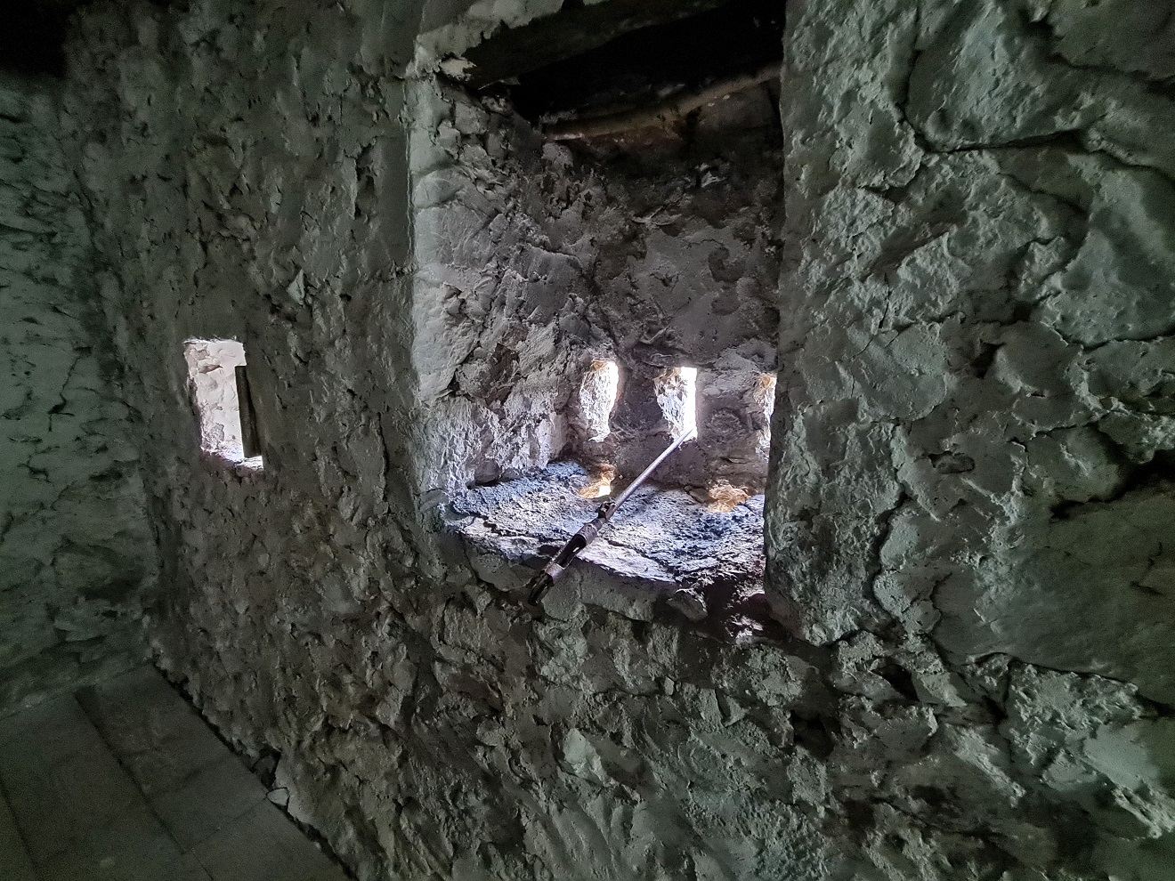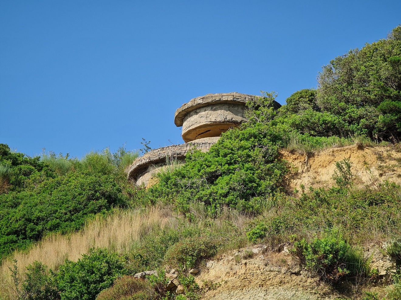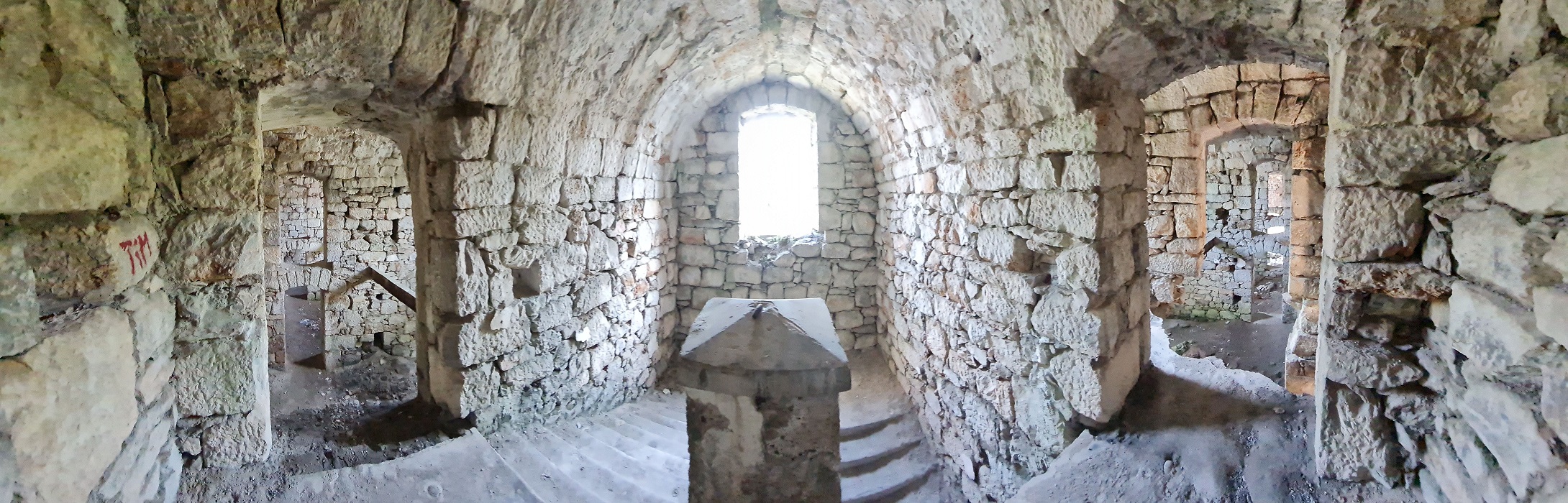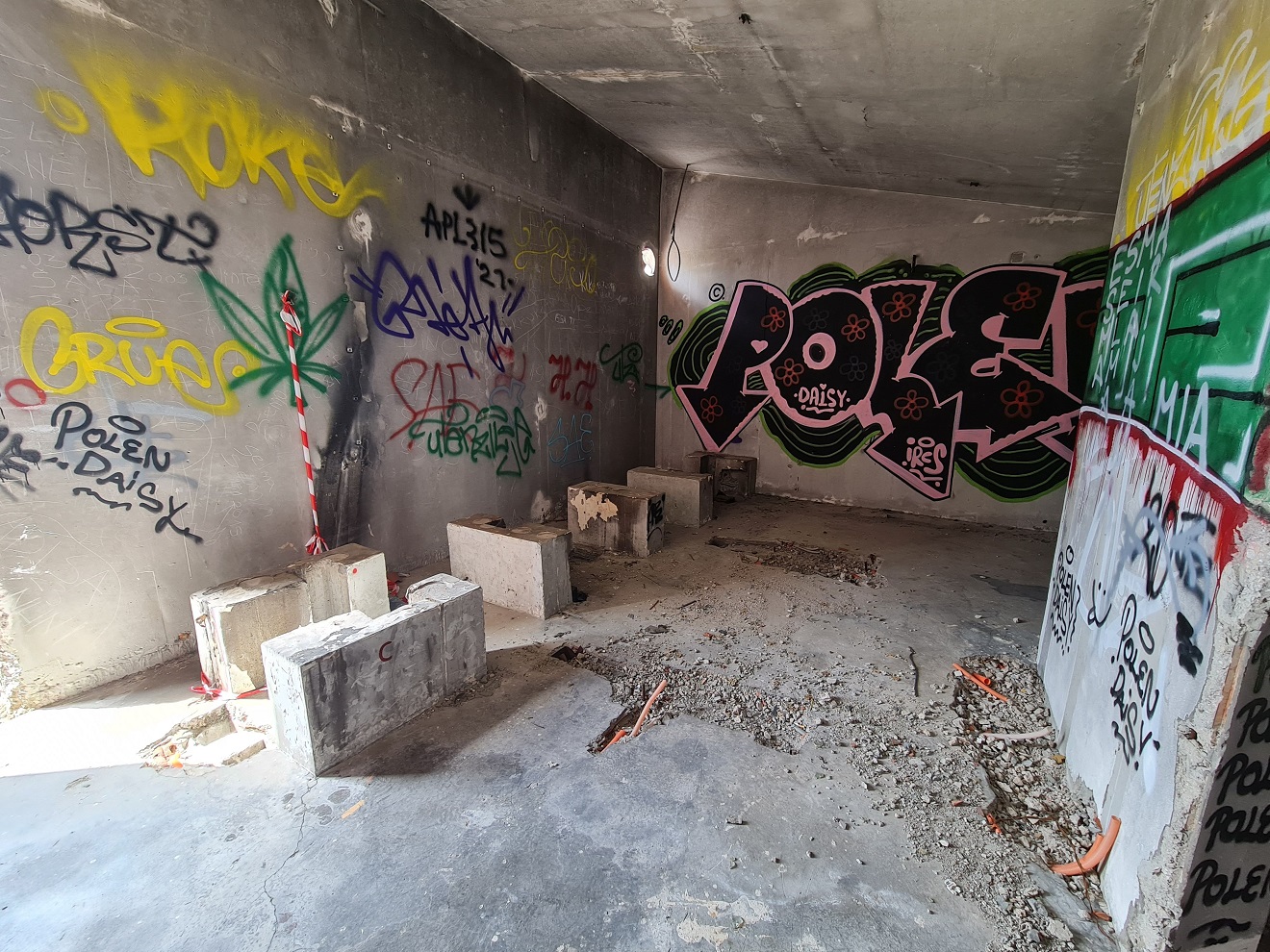 k bývalé ponorkové základně. Po průzkumu vnitřku a malé přípravě nebo spíš úpravě prostředí přejíždíme přes navezené sutiny až vybetonovanému ústí hlavního tunelu.
