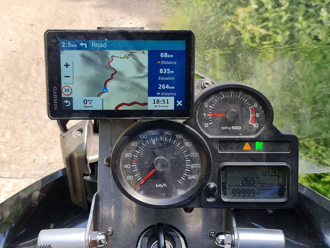 | čím: | já: | BMW R1200 ST z roku 2006, před odjezdem stav tachometru 98 379 km. |