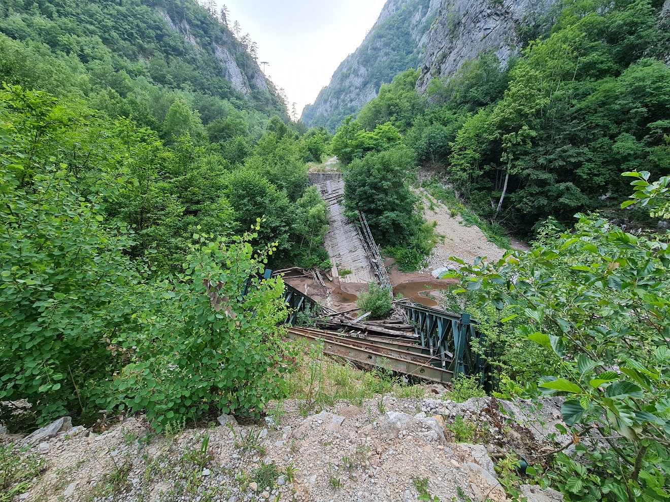 bychom zjistili po necelých třech kilometrech nové jméno místa se strženým mostem: Srušeni most na rjeci Prači.