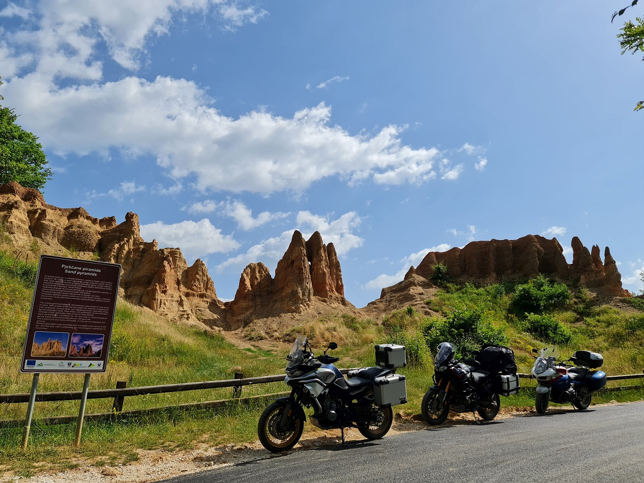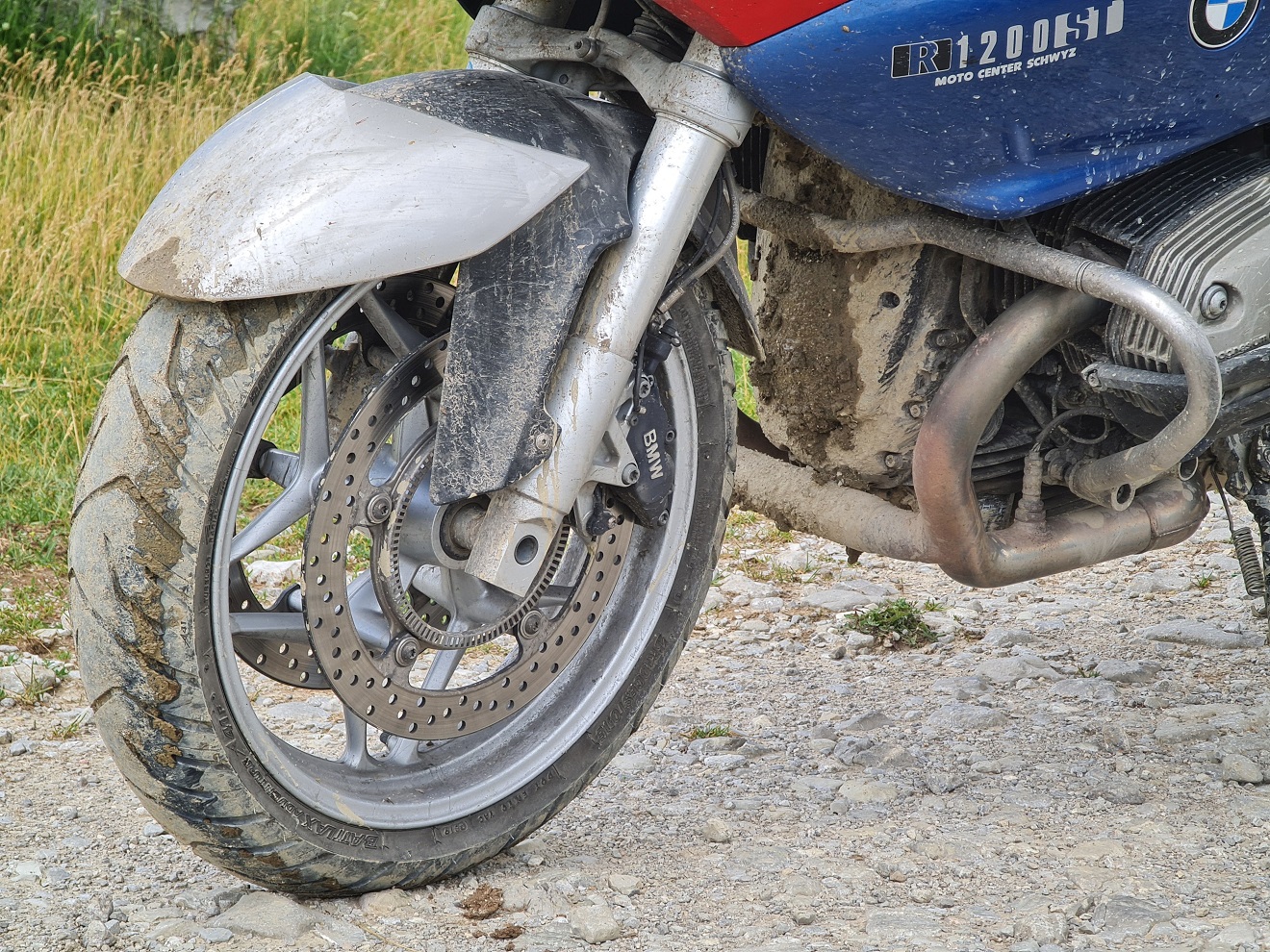Půlhodinku poklábosíme, zandáváme na podklouzávající naše Bridgestony a Tomášovy Michelin Anakee Adventure, a pokračujeme každý svou cestou.