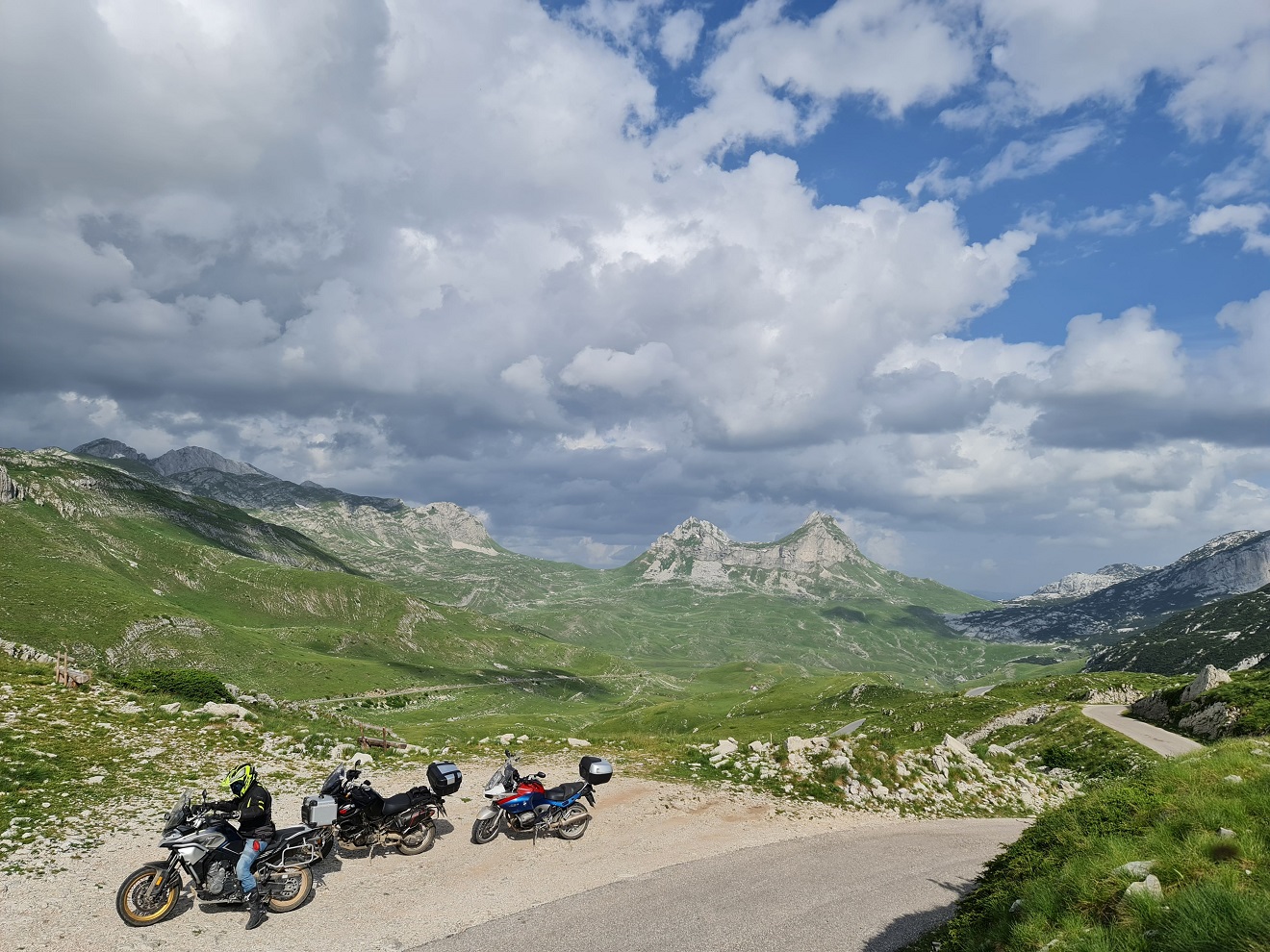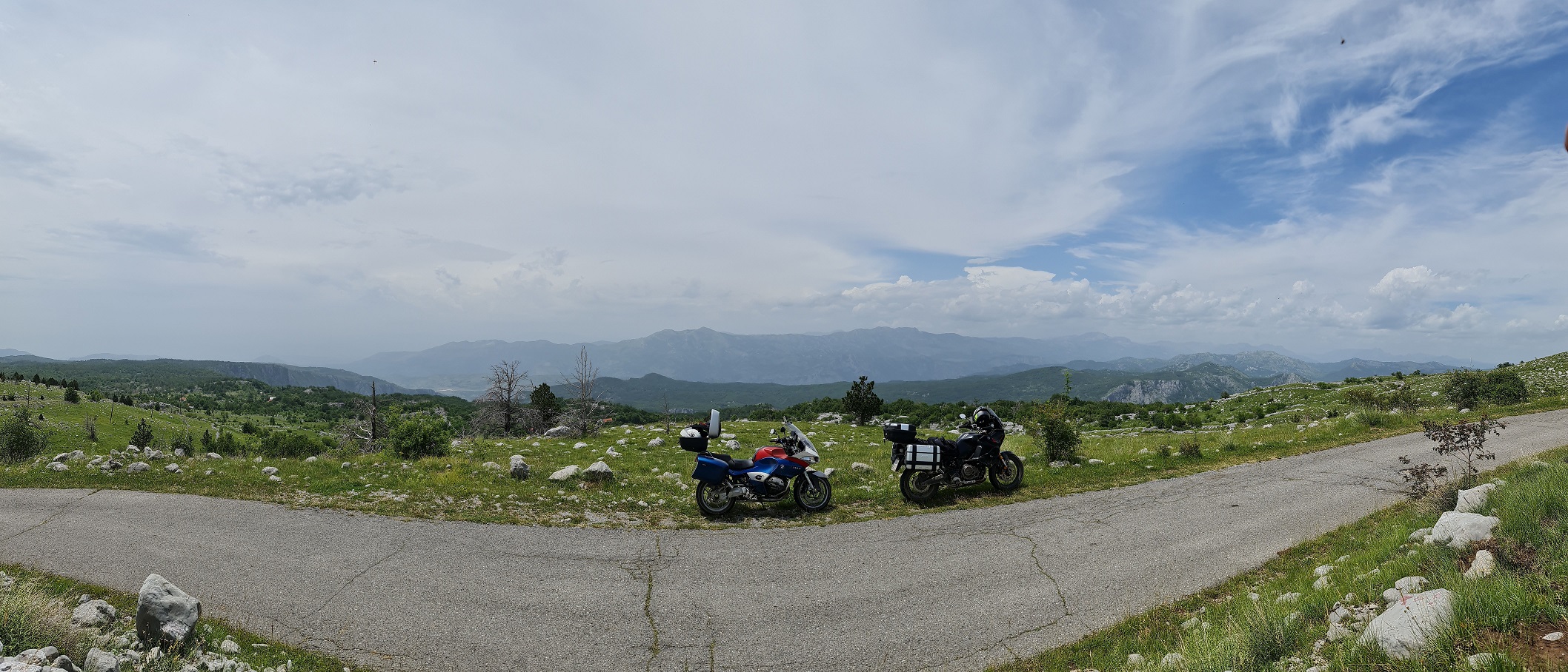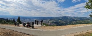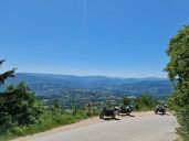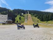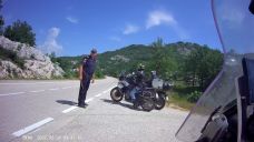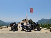 V konobě Makina Vucinica si dáme lehký oběd, u památníku s výhledem na moře a Šušanj společnou fotku s motorkami a těsně před Cetinje, na odbočce k jeskyni Lipa se Tomáš loučí a zrychleným přesunem míří domů.