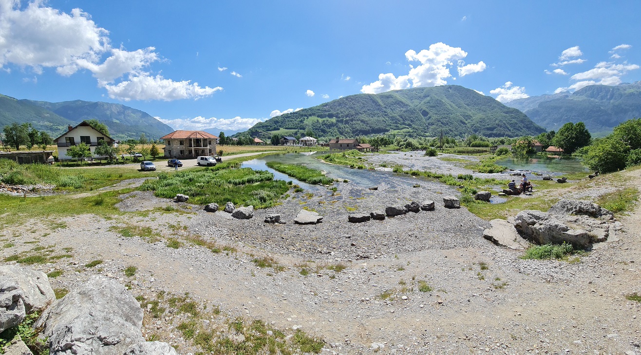 Jen s dvěma zastávkami nás po 120 kilometrech vítá Valbonë. Dojedeme na konec asfaltky a objednáme si oběd v Hotel Fusha e Gjesë Rragam.