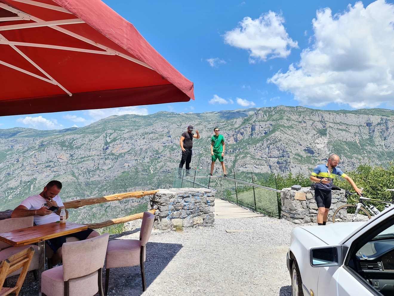 Po nás přijíždí trojice krajanů na lehkých endurech, přijeli do Albánie s dodávkou a užívají si těžších offroadů s minimem asfaltových přejezdů.