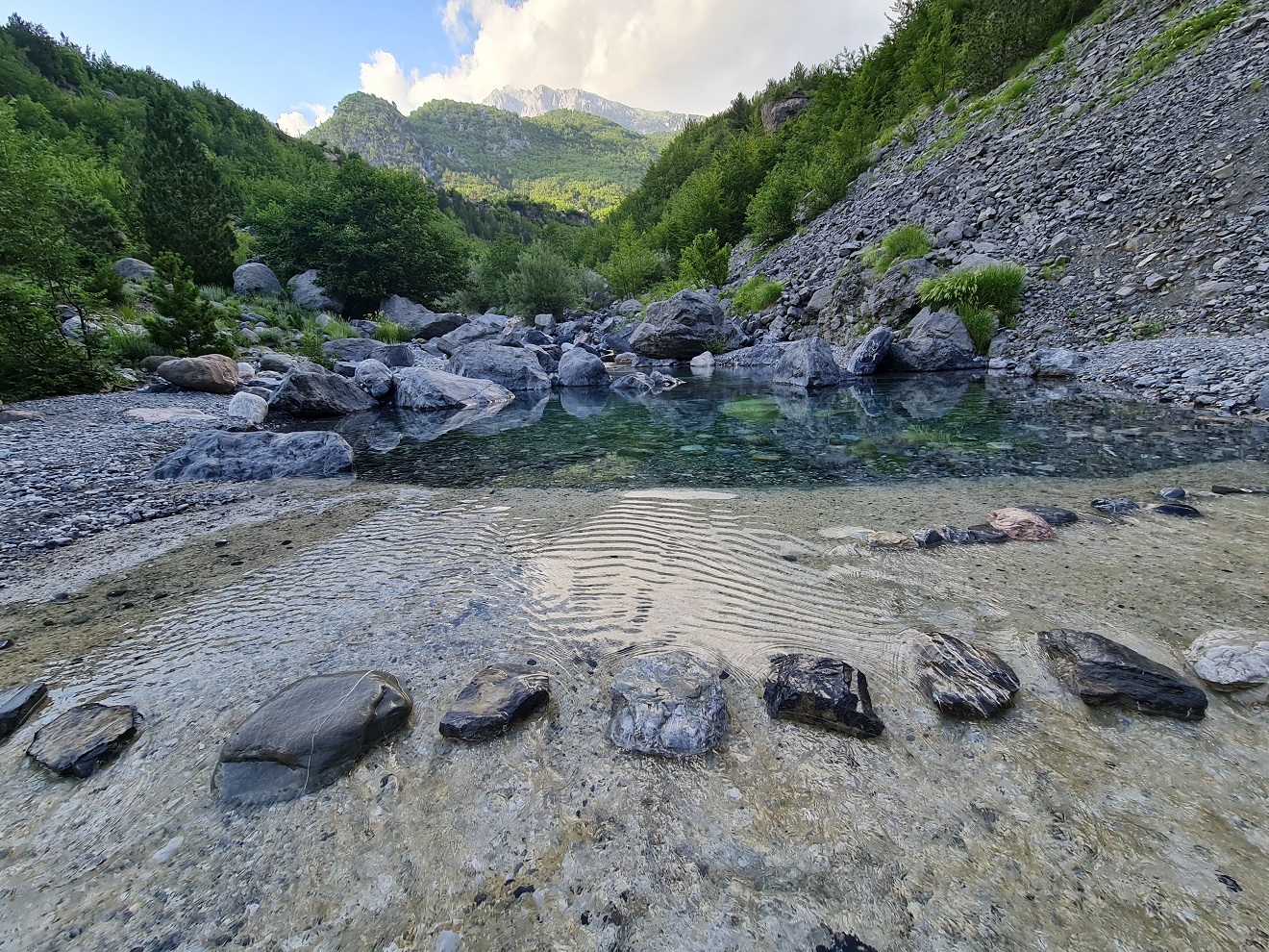 Voda v šíři vyvěrá pod svahem, tvoří průznačné jezírko a odtéká říčkou Vruja do Gusinje.