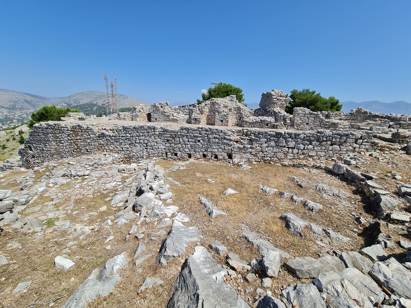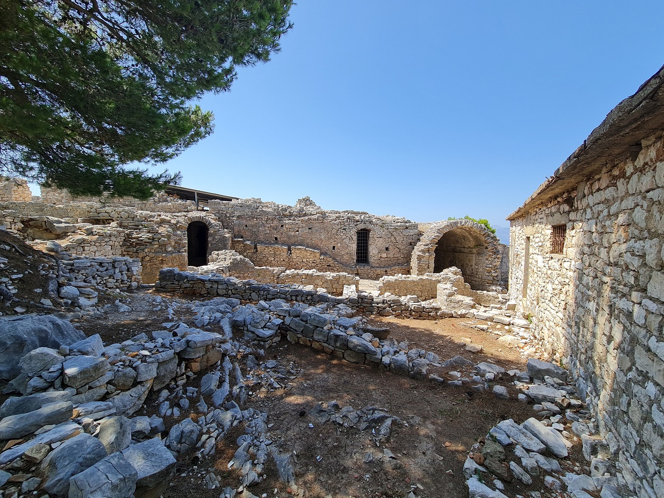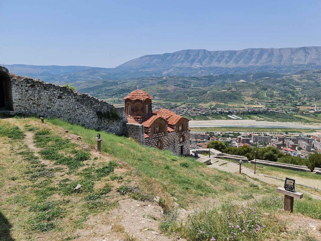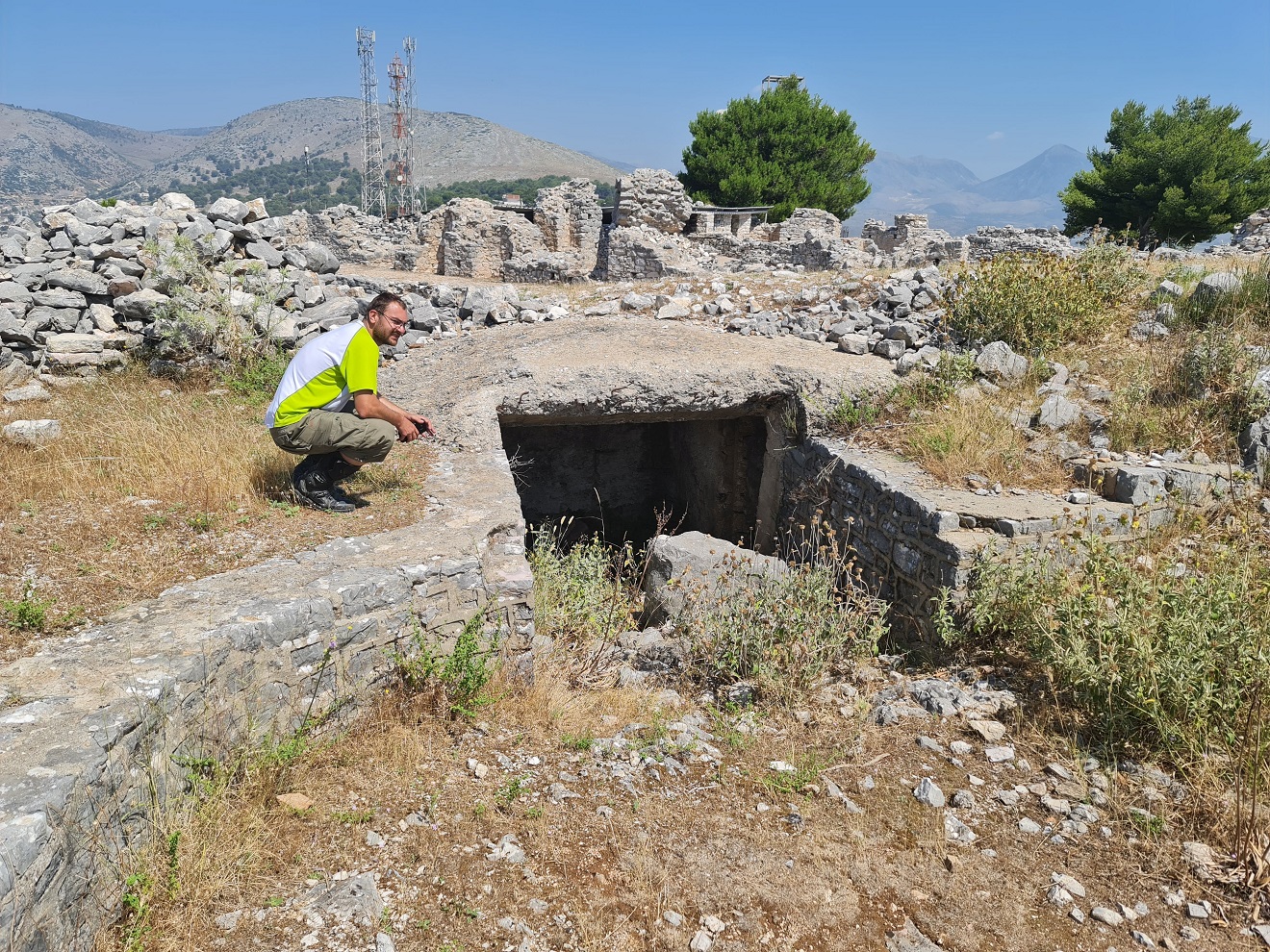 Dopoledne vynecháváme centrum a vyjedeme nad město Sarandë, ke ruinám starého kláštera Agioi Saranta. Máru posílám napřed a řeším po telefonu pracovní krizovou situaci.