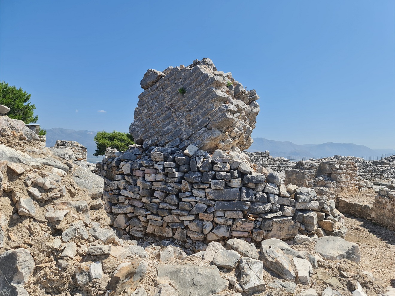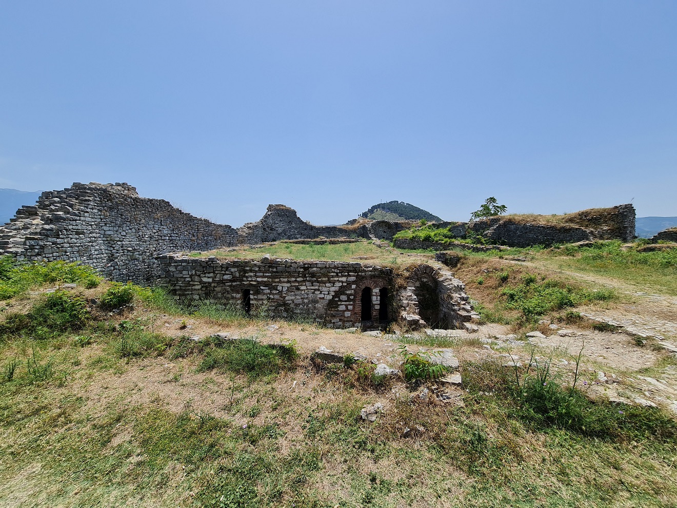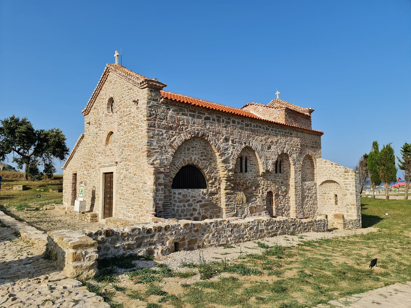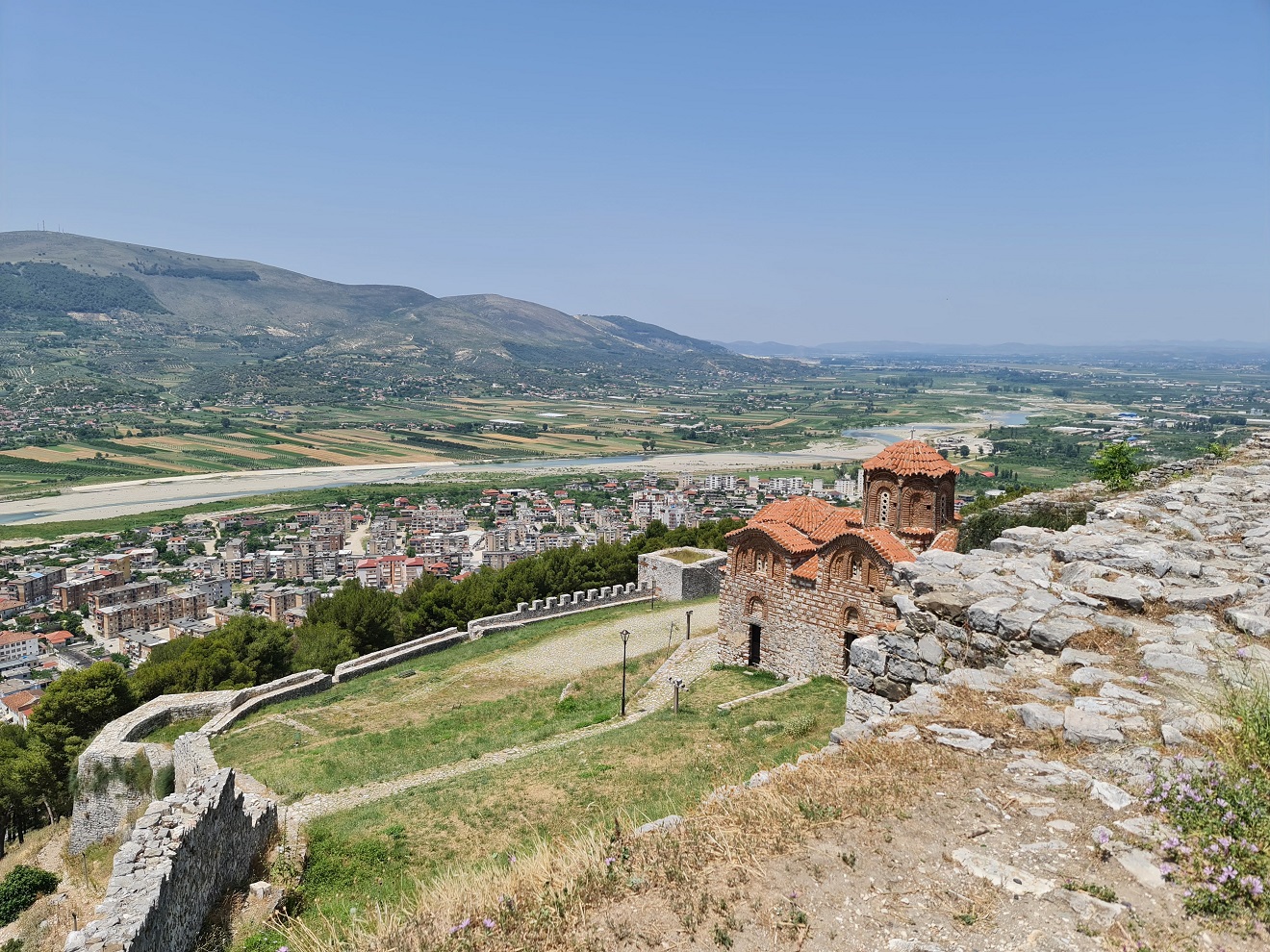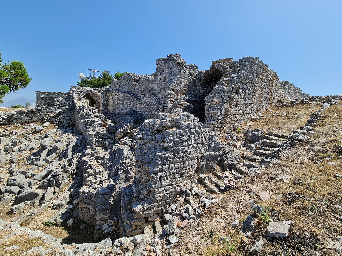 Dopoledne vynecháváme centrum a vyjedeme nad město Sarandë, ke ruinám starého kláštera Agioi Saranta. Máru posílám napřed a řeším po telefonu pracovní krizovou situaci.