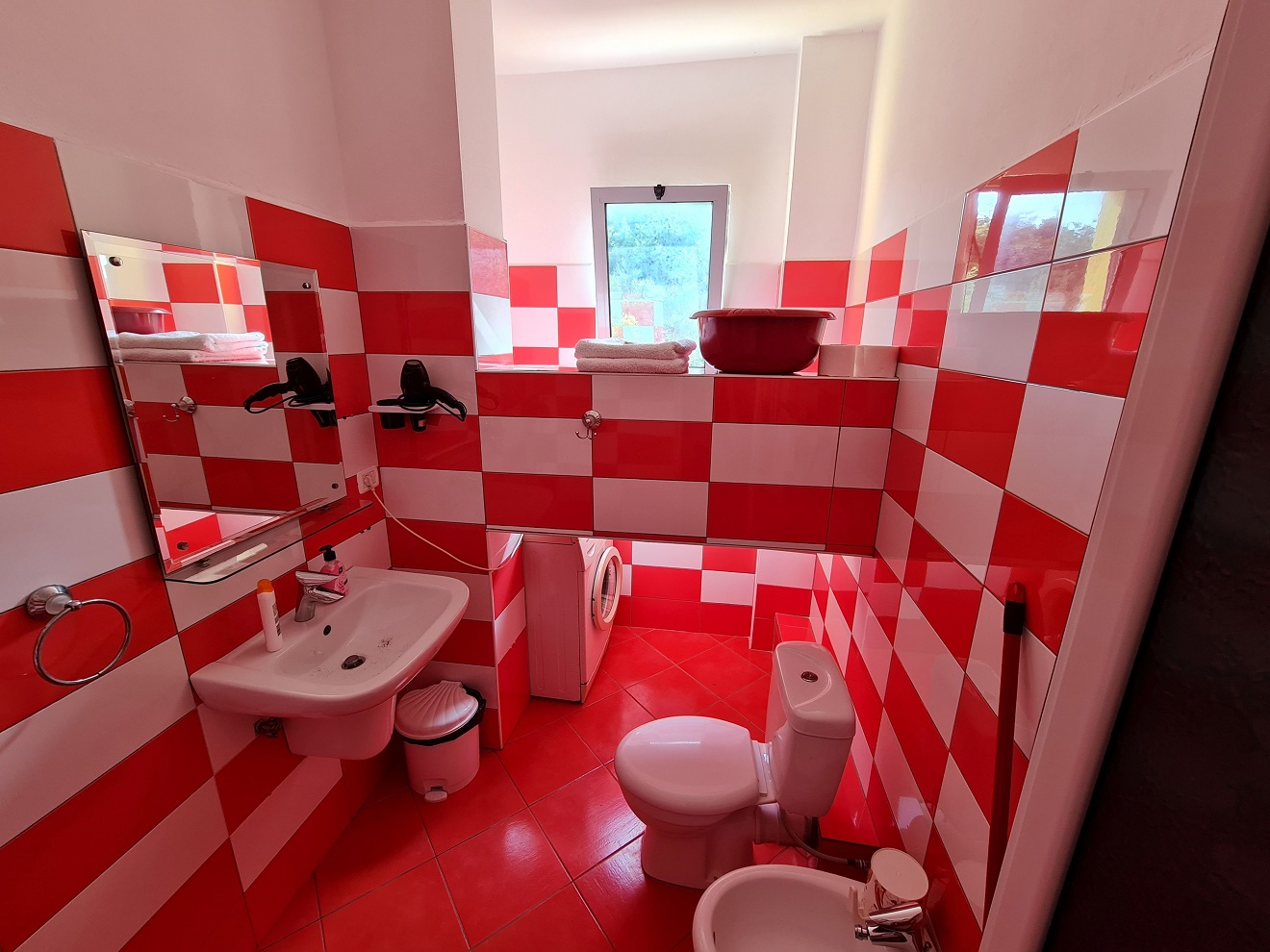 Paní domácí nám ukazuje celý byt a pro lepší domluvu nabízí maďarštinu, což je pro nás ještě nesrozumitelnější než albánština.