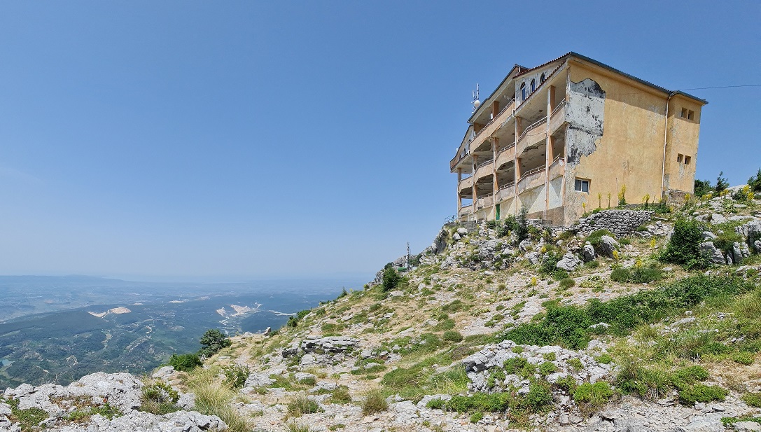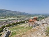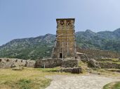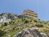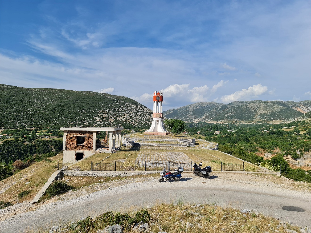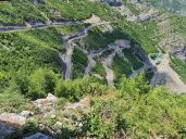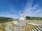Kocháme se výhledy a novým asfaltem z obce Tepelenë do hor k obci Progonat, za kterou na útesu stojí komunistický monument Memorial i Luftës së II Botërore.