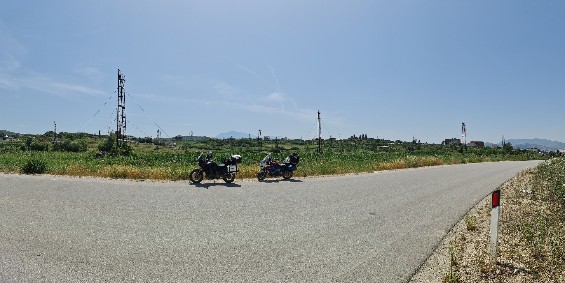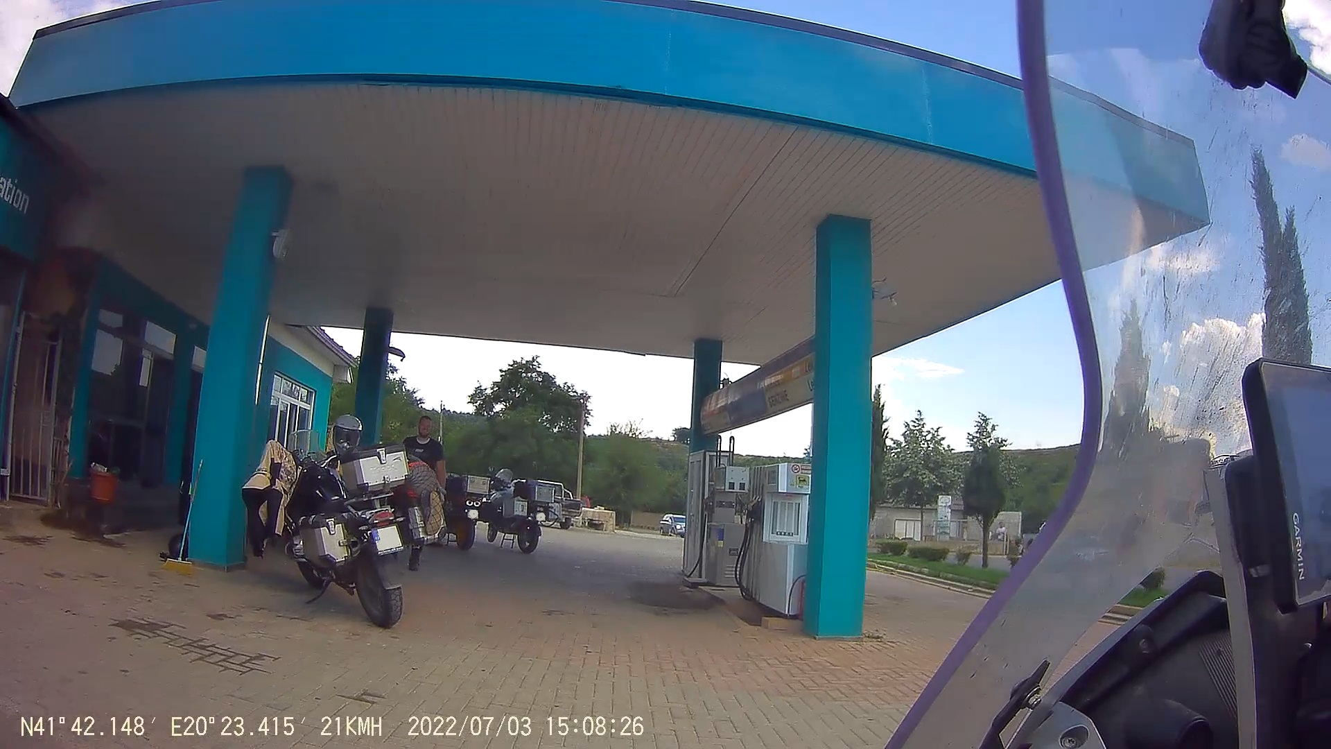 Kousek za Peshkopi vidím na jedné čerpačce partu motorek s českou registrací a jednu známou postavu, zatroubím na vpředu jedoucího Máru a zastavím u odpočívajících.