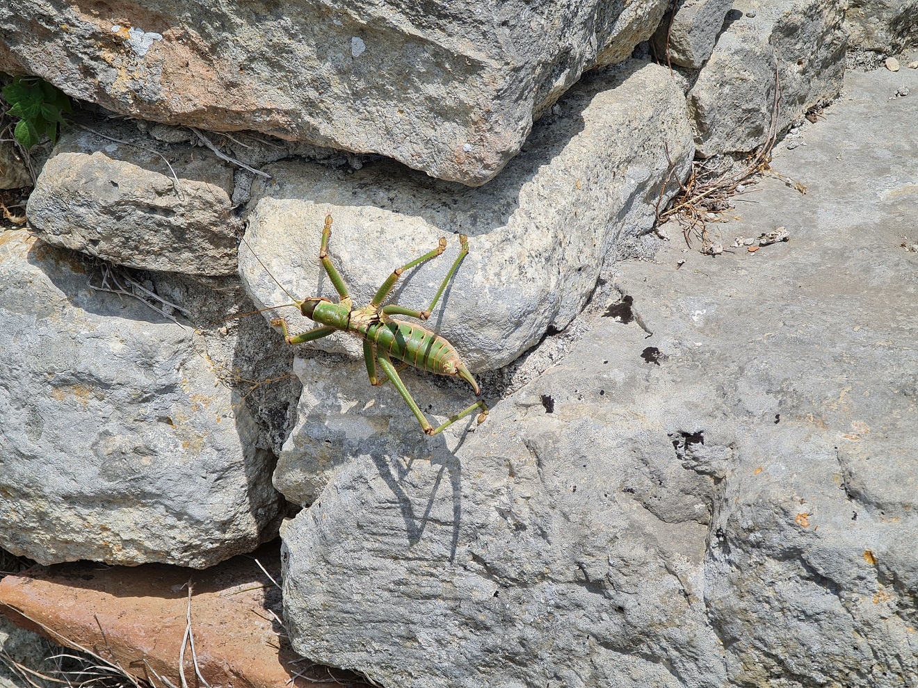 Ukazuji panu domácímu fotku na kobylky viděné dopoledne a ptám se, zda nezná jméno hmyzu. Prý karkalec, což podle google je cokoli od sarančete přes cvrčka nebo cikády až po krevetu.
