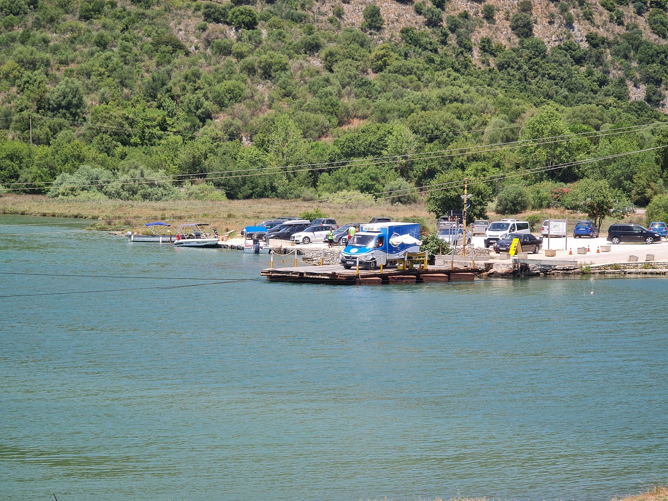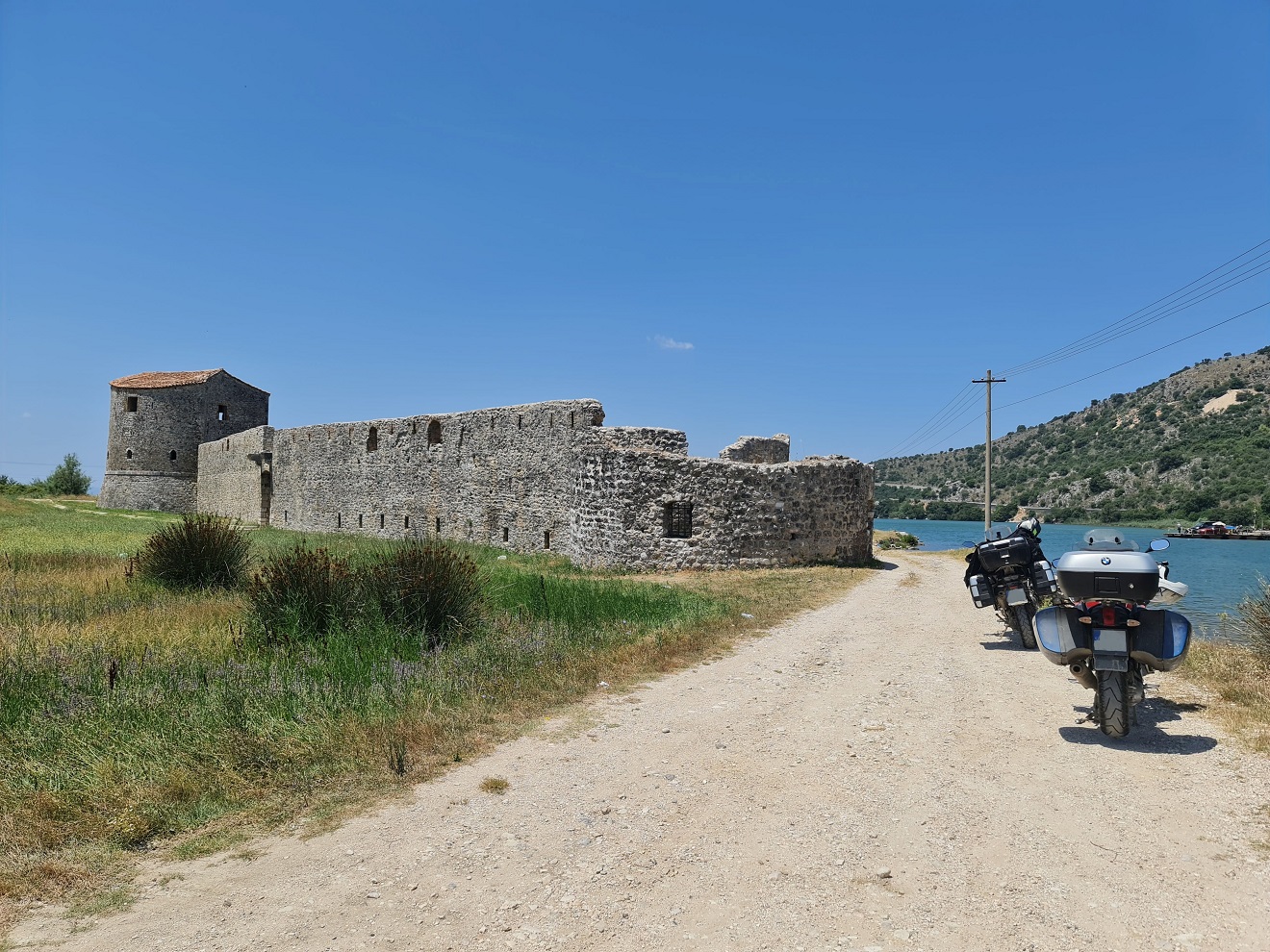 U oběda zvažujeme využití trajektu po přehradní nádrží z Firzë do Komanu, ale ... už jsem jím pluli, cena za motorku + osobu odpovídá plné nádrži benzínu a časová úspora padne na čekání v přístavu.