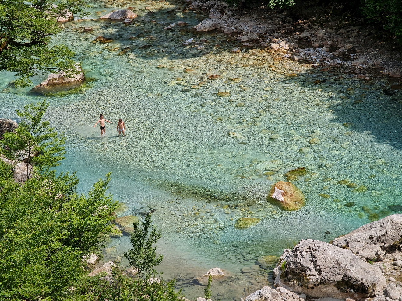 S podceněnou přípravou a záměnou horkých a studených pramenů na mapy.cz dojedeme jen k těm studeným, neriskujeme přejezd širokého brodu a nechce se nám snad kilometr pěšky ve vedru.