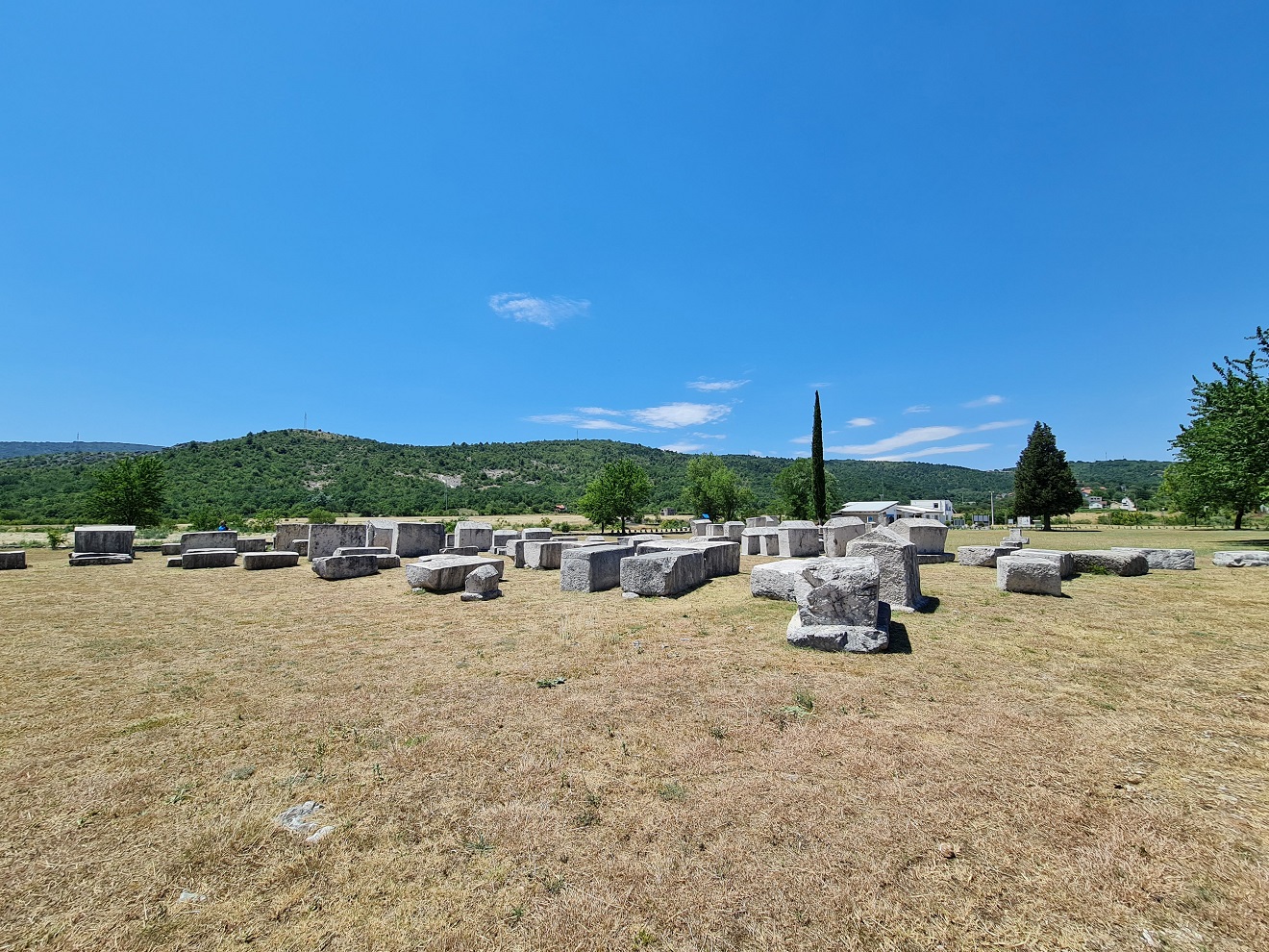 Podle řeckých hranic, po několika kilometrech šotoliny, dojedeme k opuštěným termálním lázním. Nejsou až tak opuštěné a až tak staré, neriskujeme lézt přes vysoký plot a pokračujeme dál k horkým pramenům a lázním antickým.