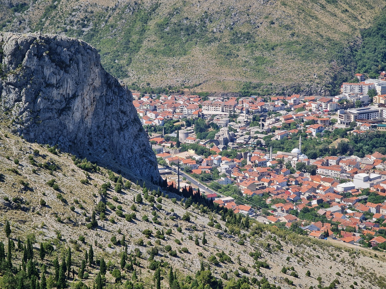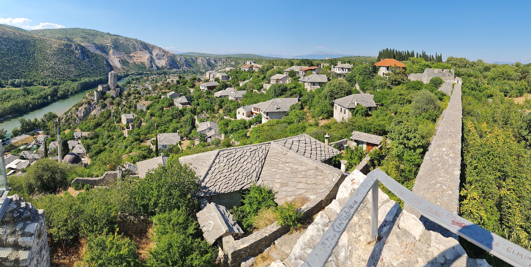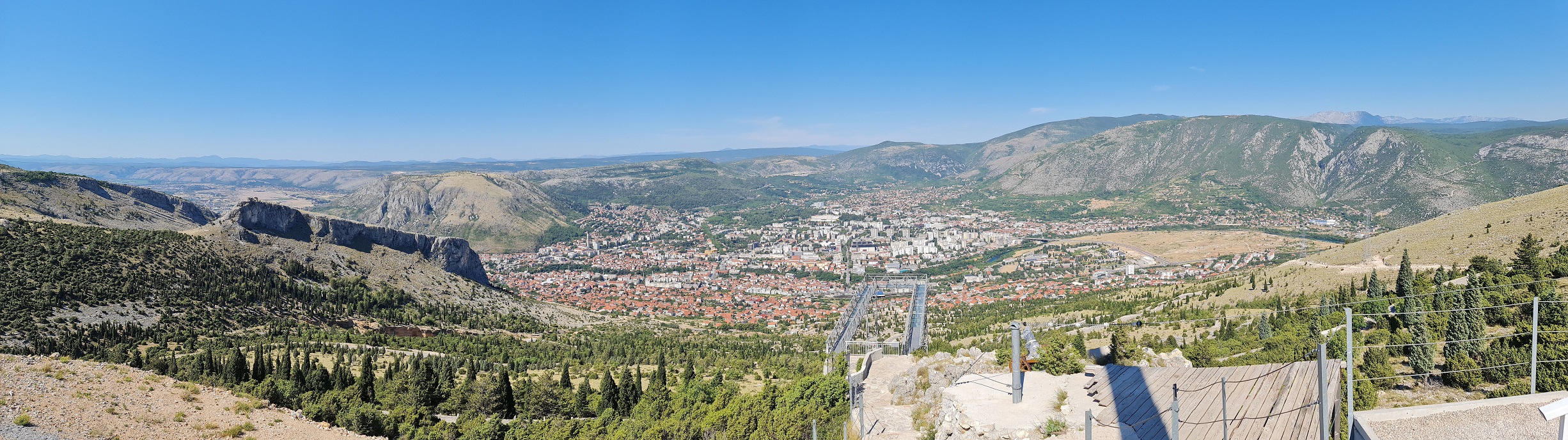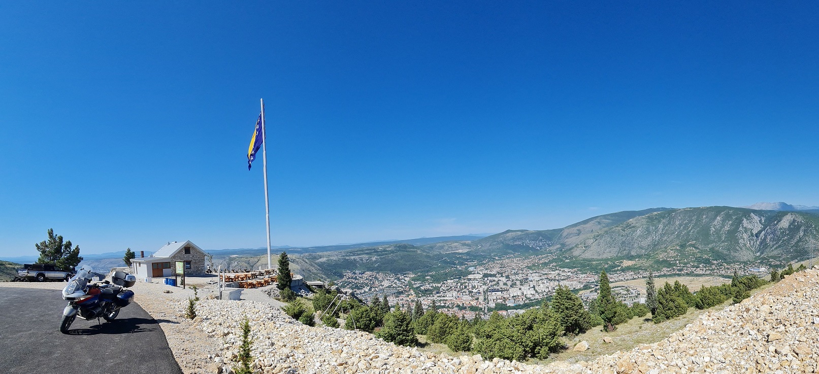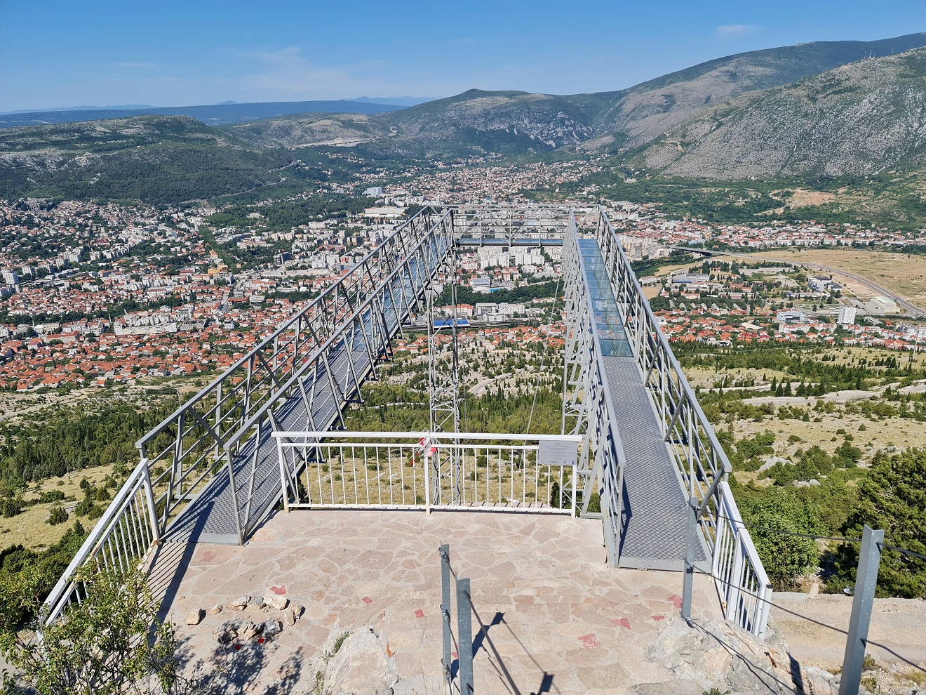 Stari most v Mostaru už známe, u Milenijského kříže jsme též byli, proto jedeme přímo k nově zbudované vyhlídce na Mostar nazvané Vidikovac Fortica.