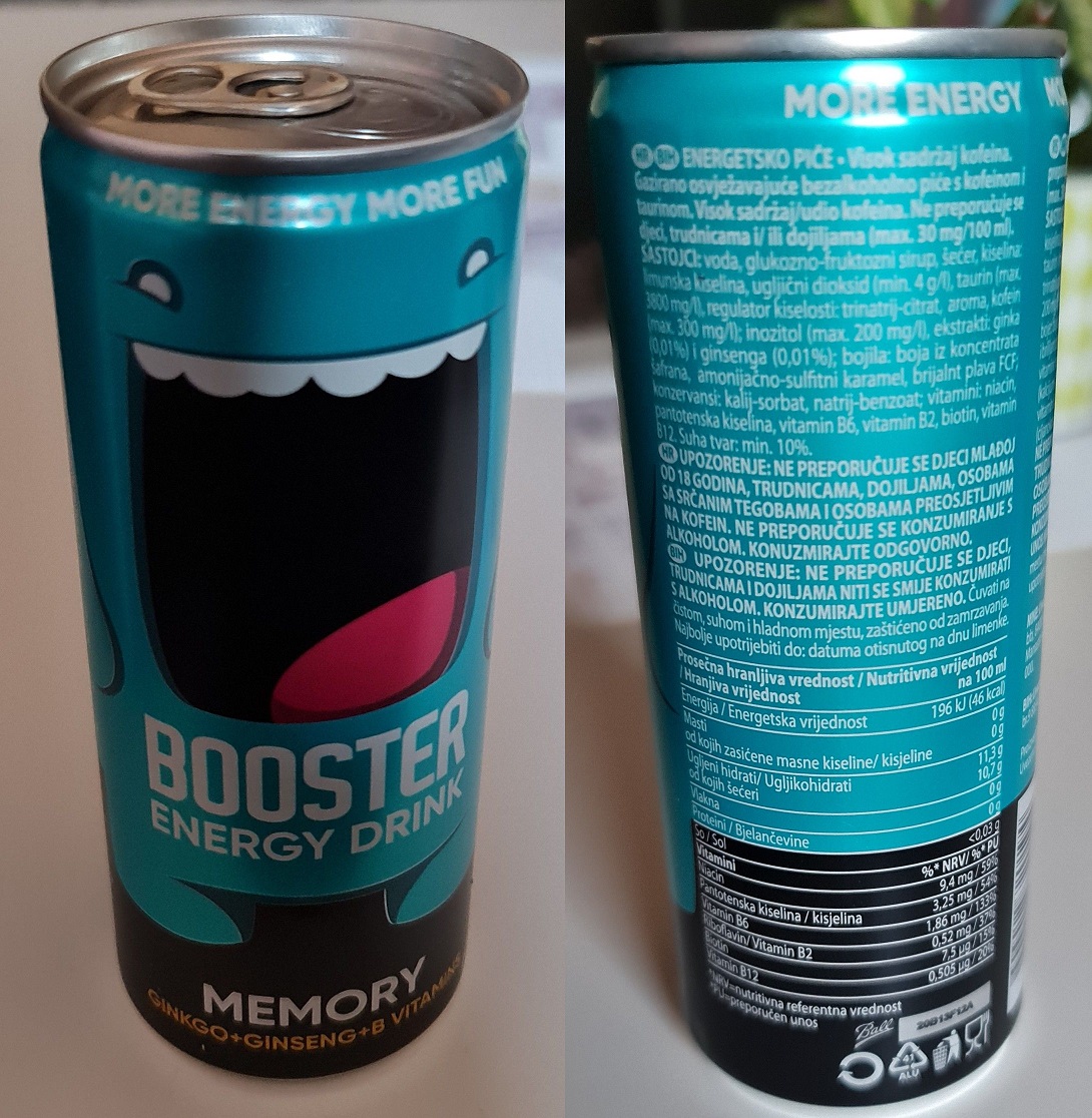 Během pití čtu popis obsahu, krom běžného taurinu a kofeinu obsahuje výtažek ginkgo a ginseng + množství B-vitaminů.