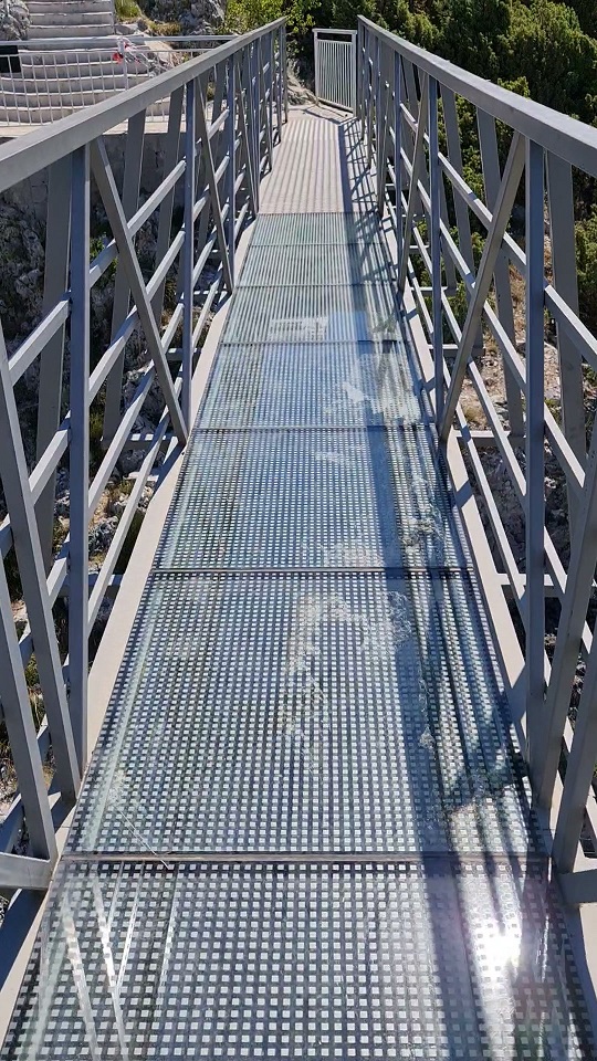 Úžasný výhled je už z parkoviště, ti odvážnější mohou na lávku s proskleným dnem. Vstup má jednoduchá pravidla: očistit boty, nejvíce 30 lidí současně a nezdržovat se déle než 5 minut.