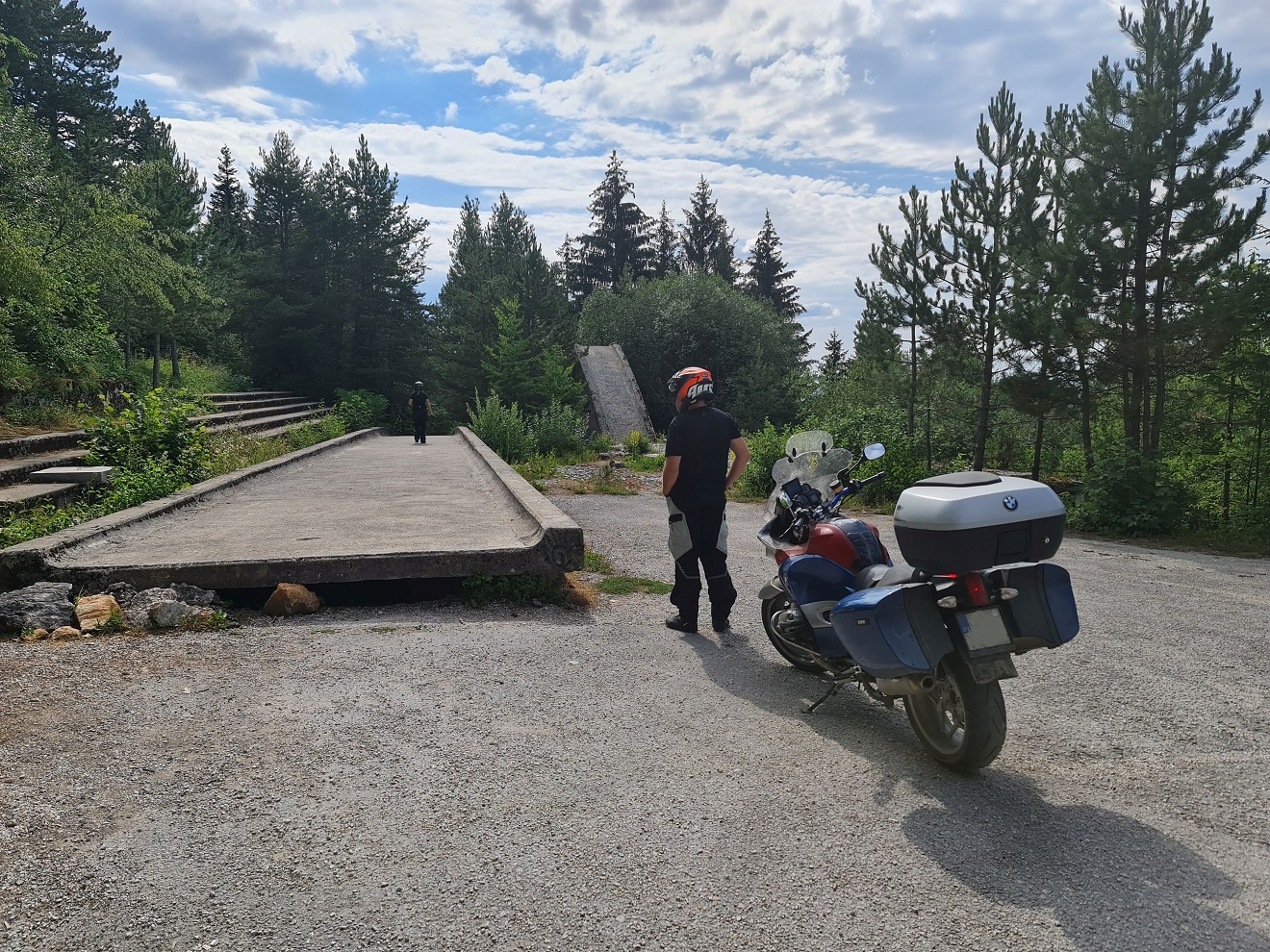 Je tam sice zákaz vjezdu motorových vozidel, ale risk je zisk a tak tam vjedeme na motorkách.