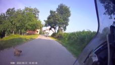 jeho slovy: "Pojedu napřed a natočím vás, jak jedete". Dáme mu náskok, vyjedeme za ním,