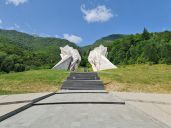 a pak zastavíme u památníku Varrezat Monumentale Qafë Botë - Kllogjër, památníku masakru 2900 Albánců při etnických čistkách v letech 1944-45.