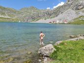 U jezera připomínáme Milanovi jeho ranní slib "vykoupu se kdekoli, kde zastavíme a kde to bude to možné".