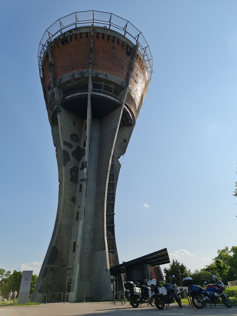 Před koncem dne stíháme navštívit ve Vukovaru jak muzeum armádní výzbroje, tak zachráněný rozstřílený vodojem s expozicí uvnitř a vyhlídkovou plošinou na vrcholu věže.