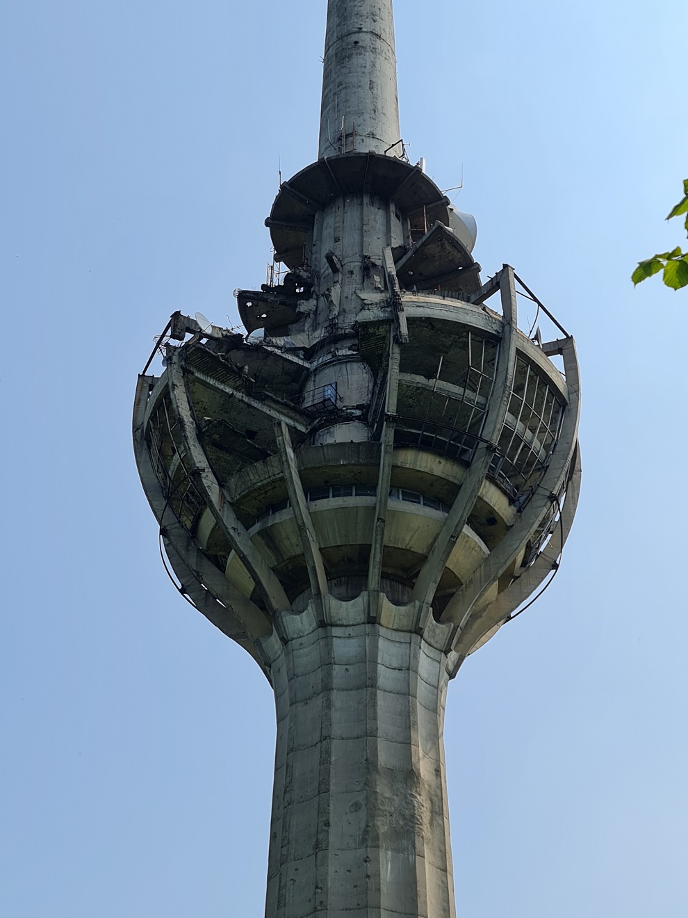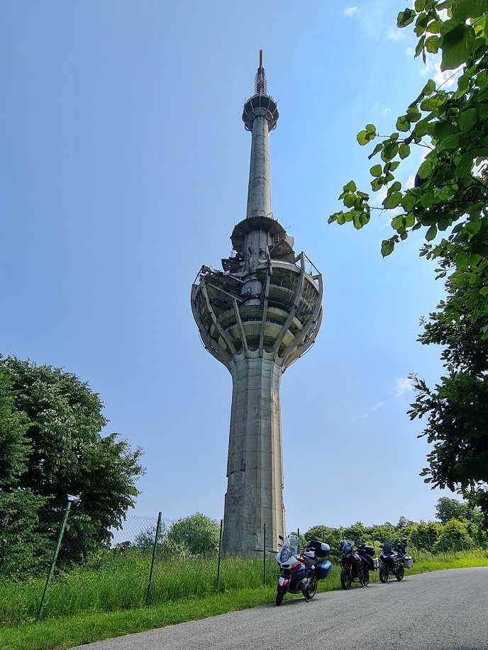 Začínáme v NP Fuška Gora, nejprve u památníku Sloboda a pak u rozstřílené bývalé televizní věže, která neměla podobné štěstí jako o den dříve navštívený vodojem ve Vukovaru.