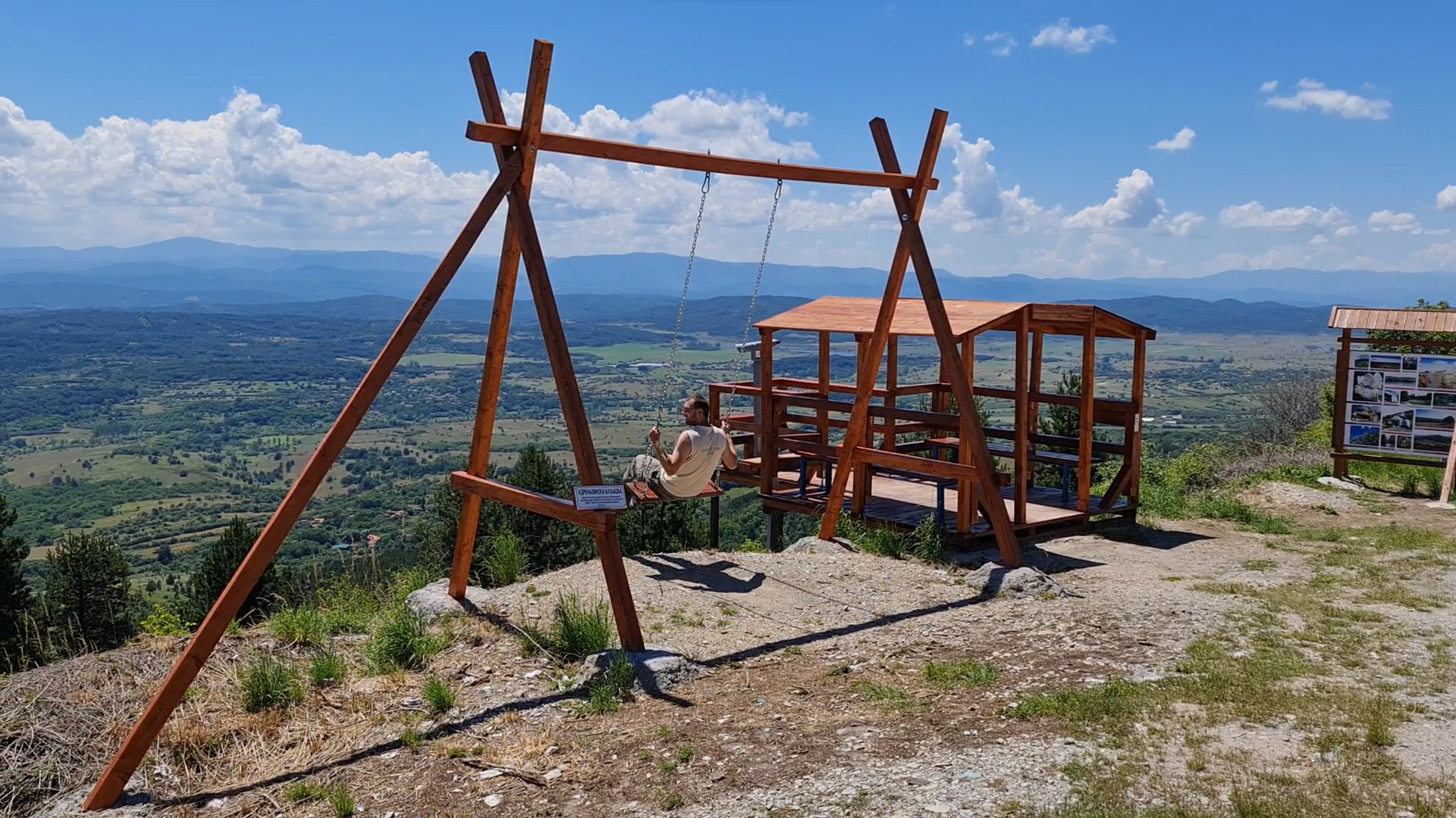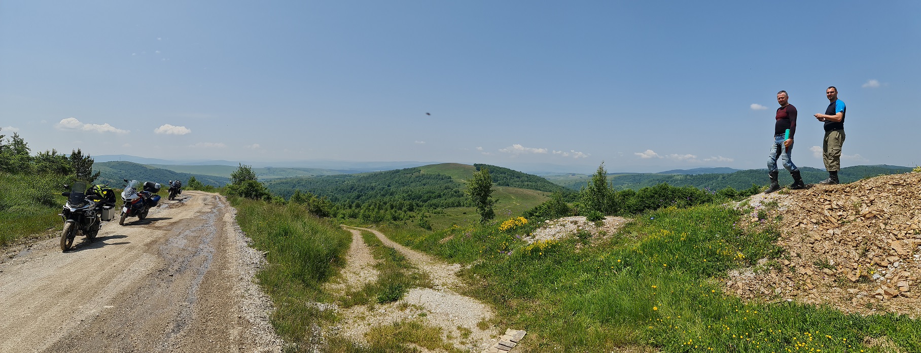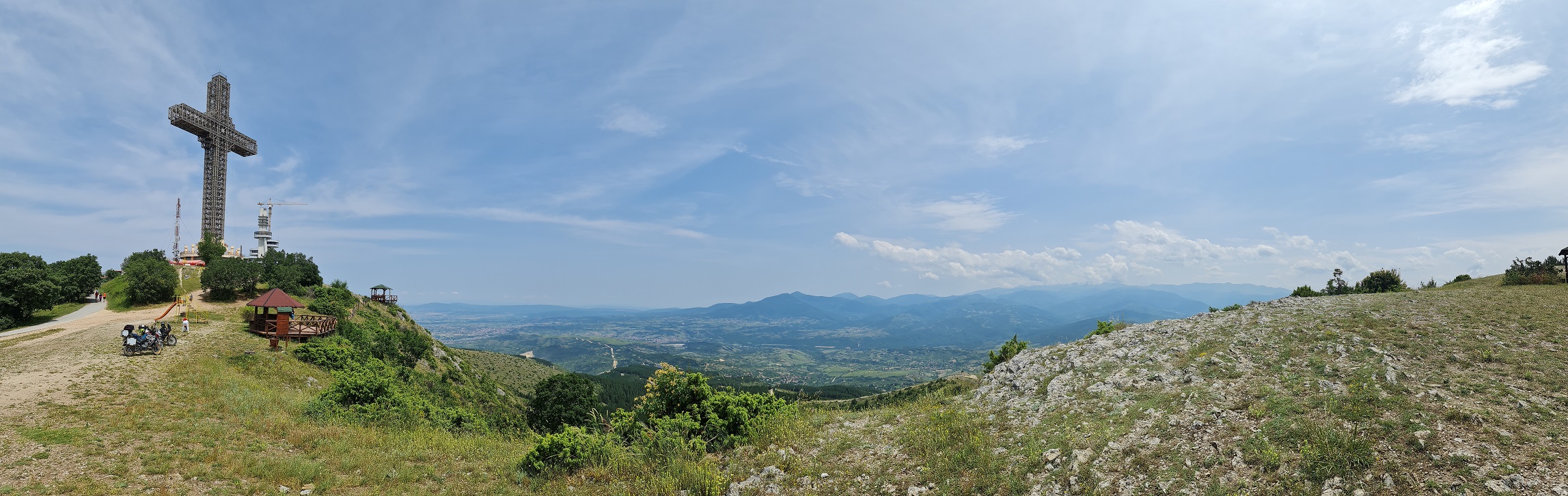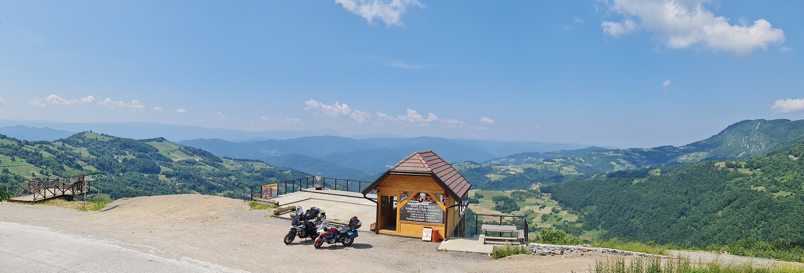 První je Stara Planina, úžasná vyhlídka do kraje s posezením a houpačkou. Milan kontroluje zadní pneu a rozhoduje se k nákupu nové, mírně měníme trasu na město Niš.