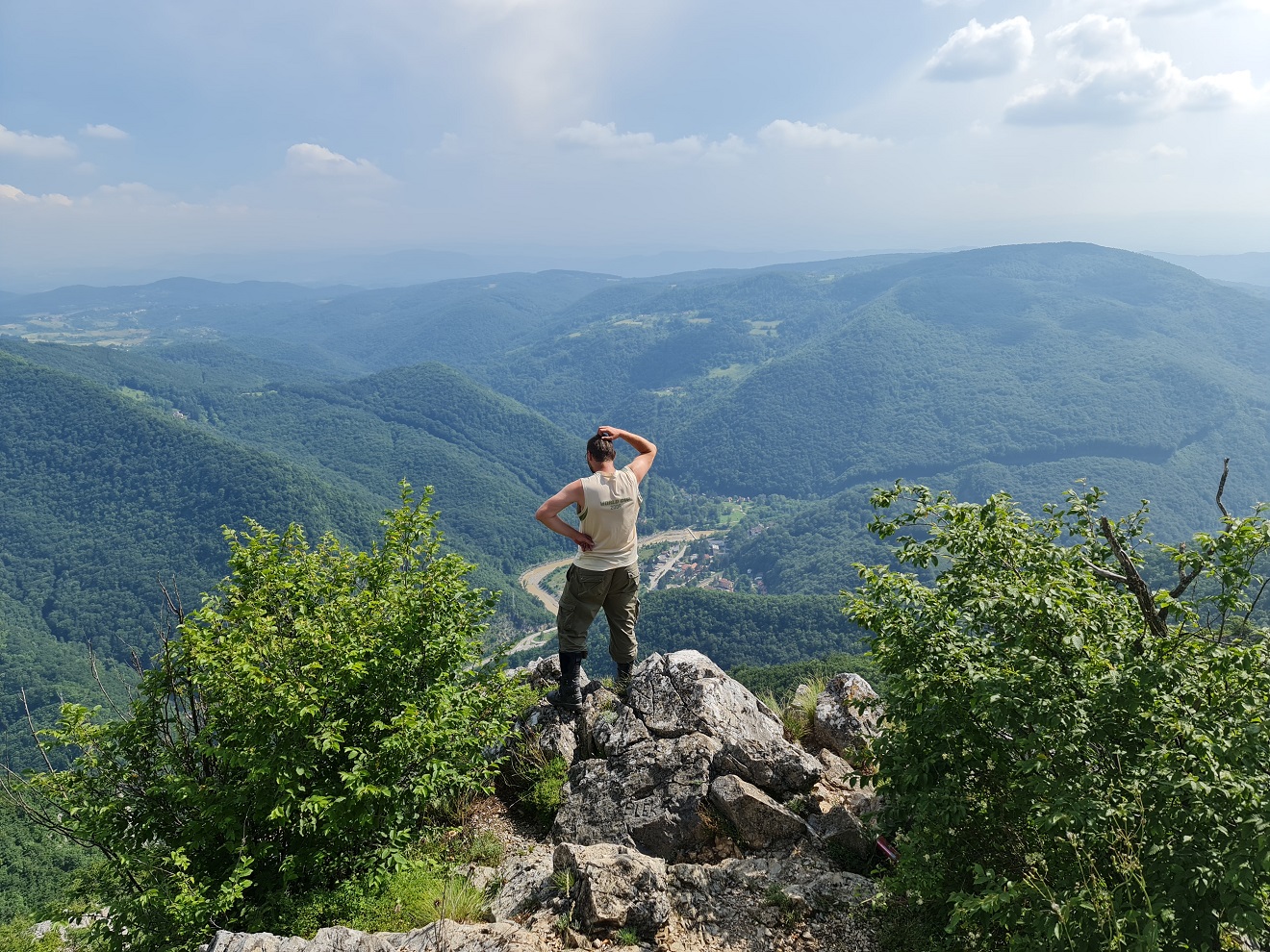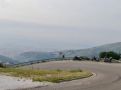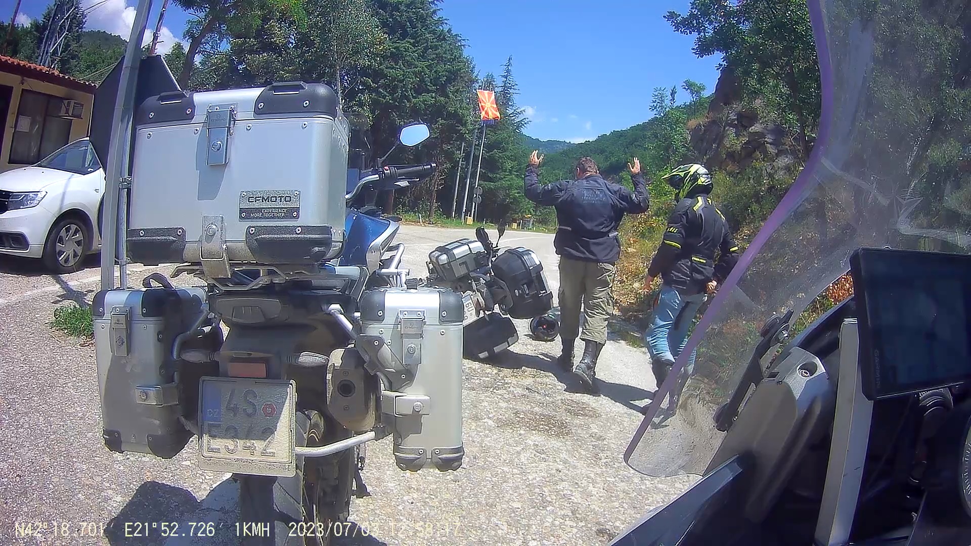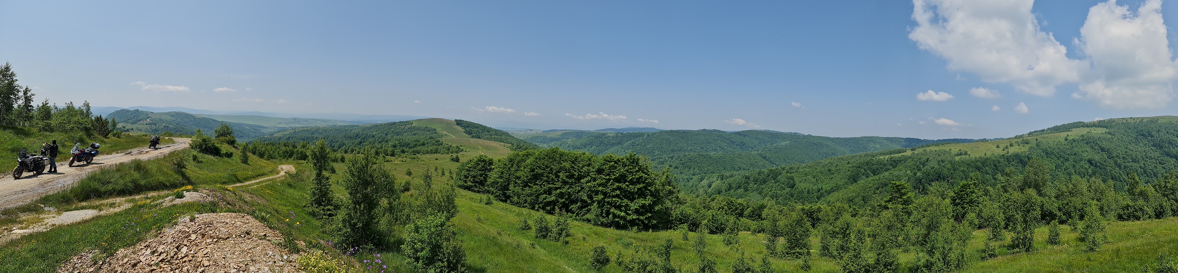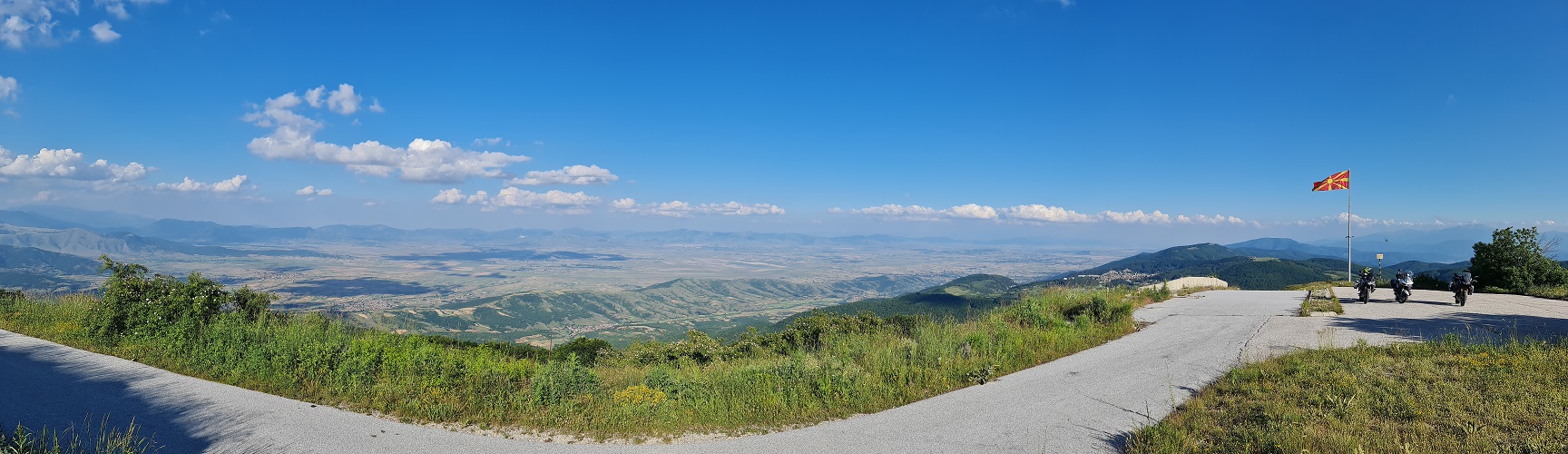 První je Stara Planina, úžasná vyhlídka do kraje s posezením a houpačkou. Milan kontroluje zadní pneu a rozhoduje se k nákupu nové, mírně měníme trasu na město Niš.