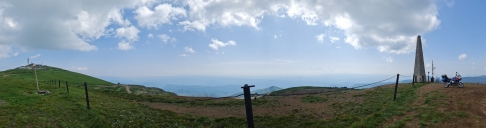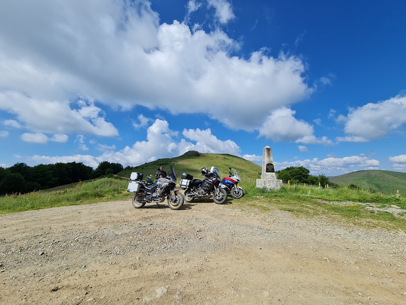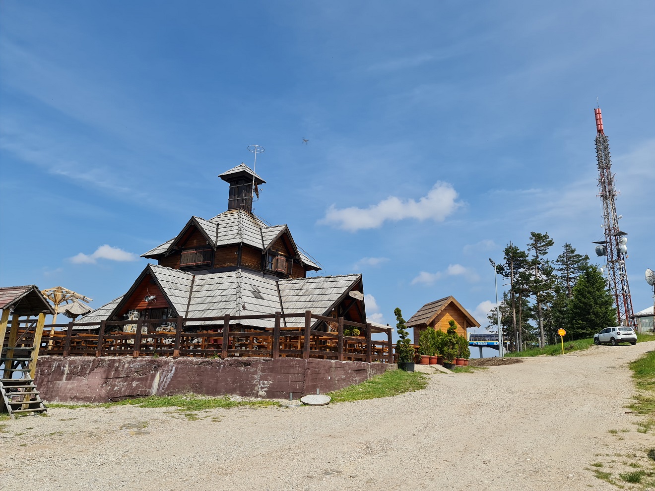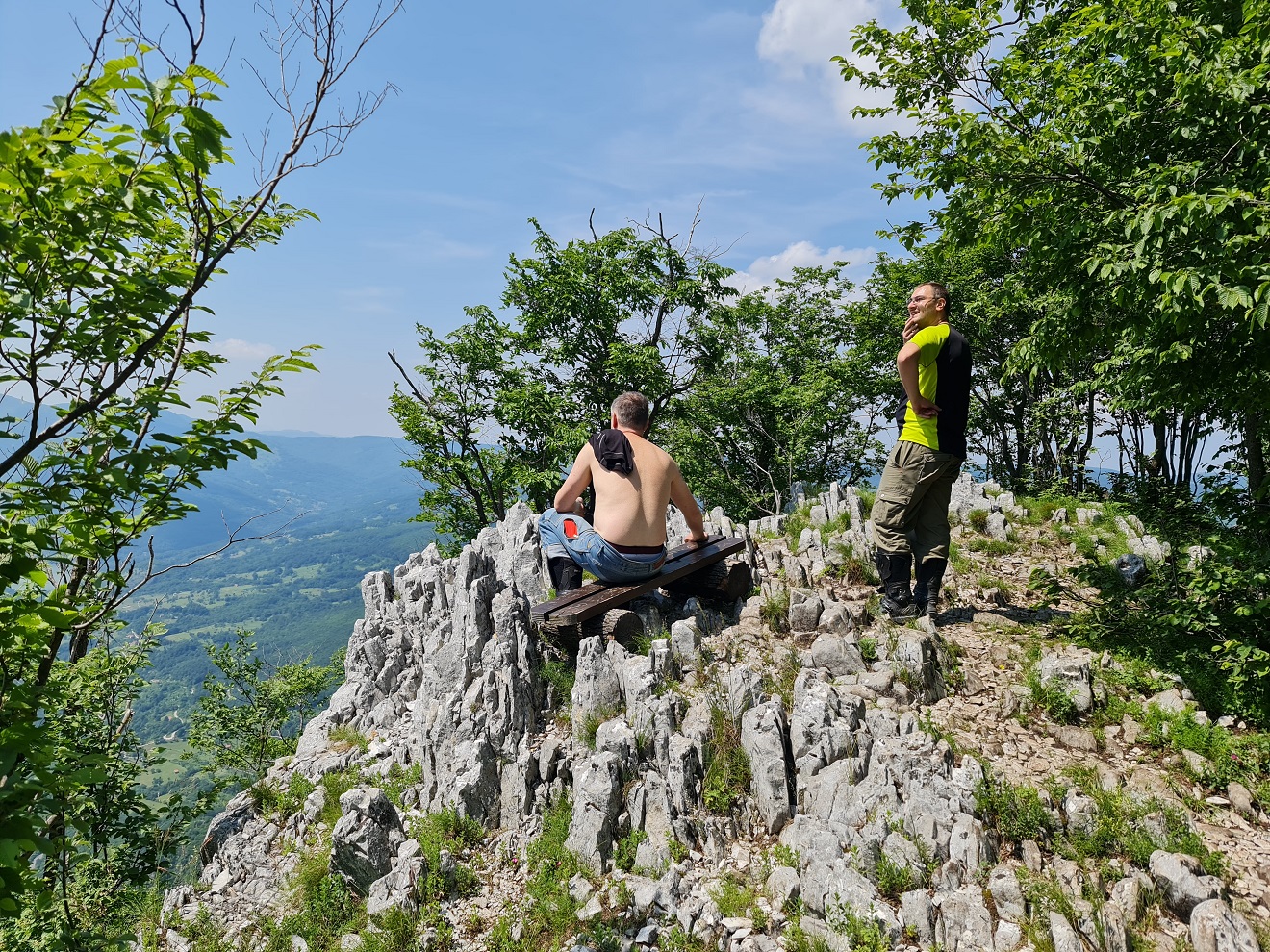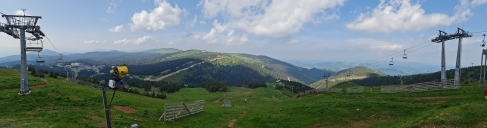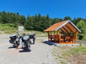 Pokoušeli jsme se zadem vyjet k horní stanici vleku na vrchu Tomoros, ale po nočních deštích to byl pro obutí našich strojů těžký úkol a tak jsme vzali za vděk fotkou od lavičky u asfaltky.