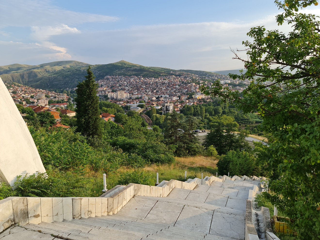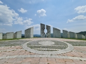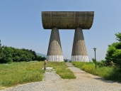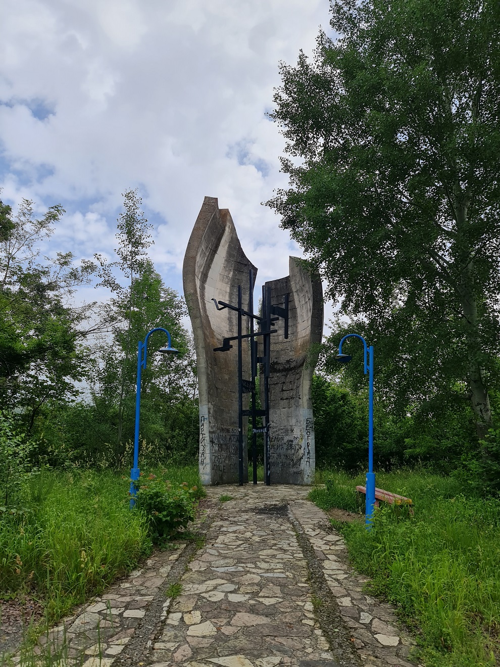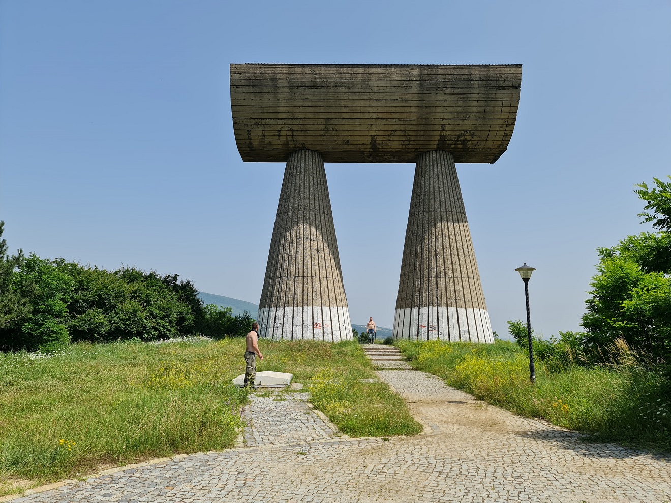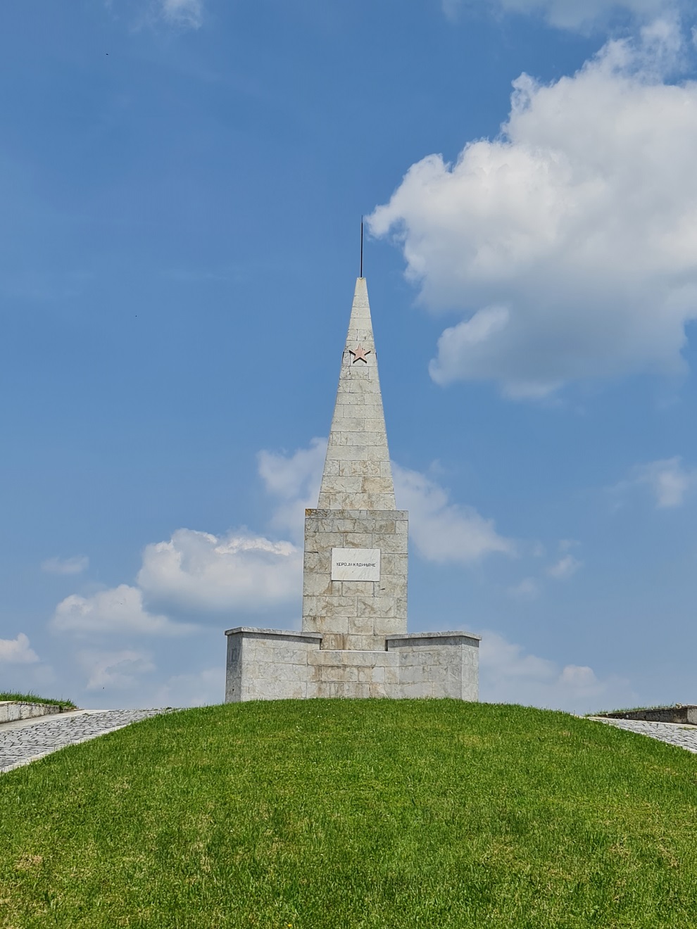 Druhou zastávkou, první v Kosovu, je památník UCK. V Mitrovici nejde nevyjít na vyhlídku nad město a nevyfotit si komunistickou zhovadilost, Spomenik palim rudarima NOB.