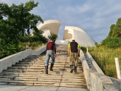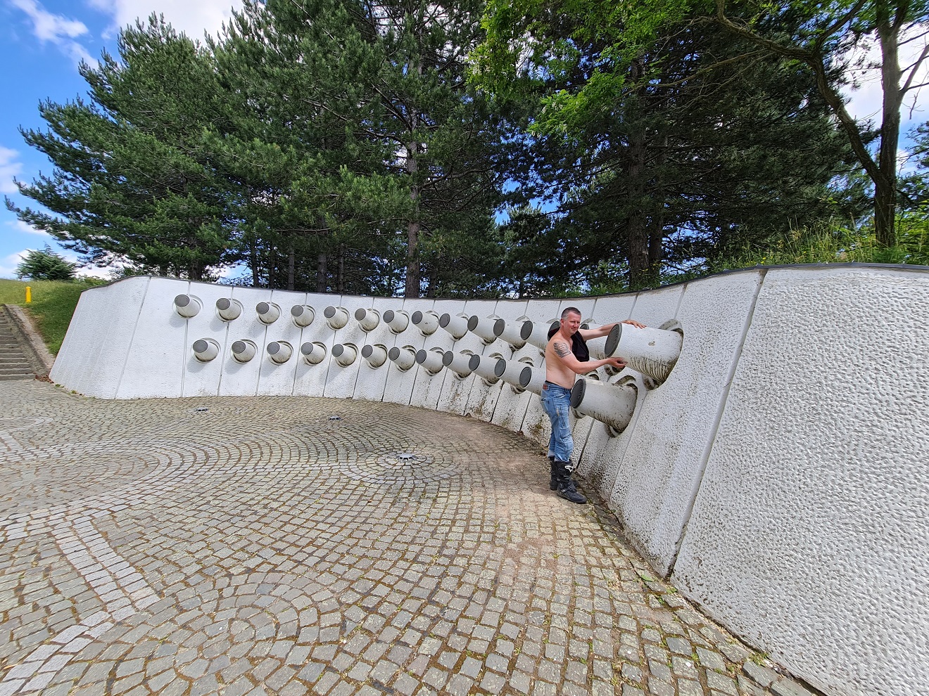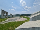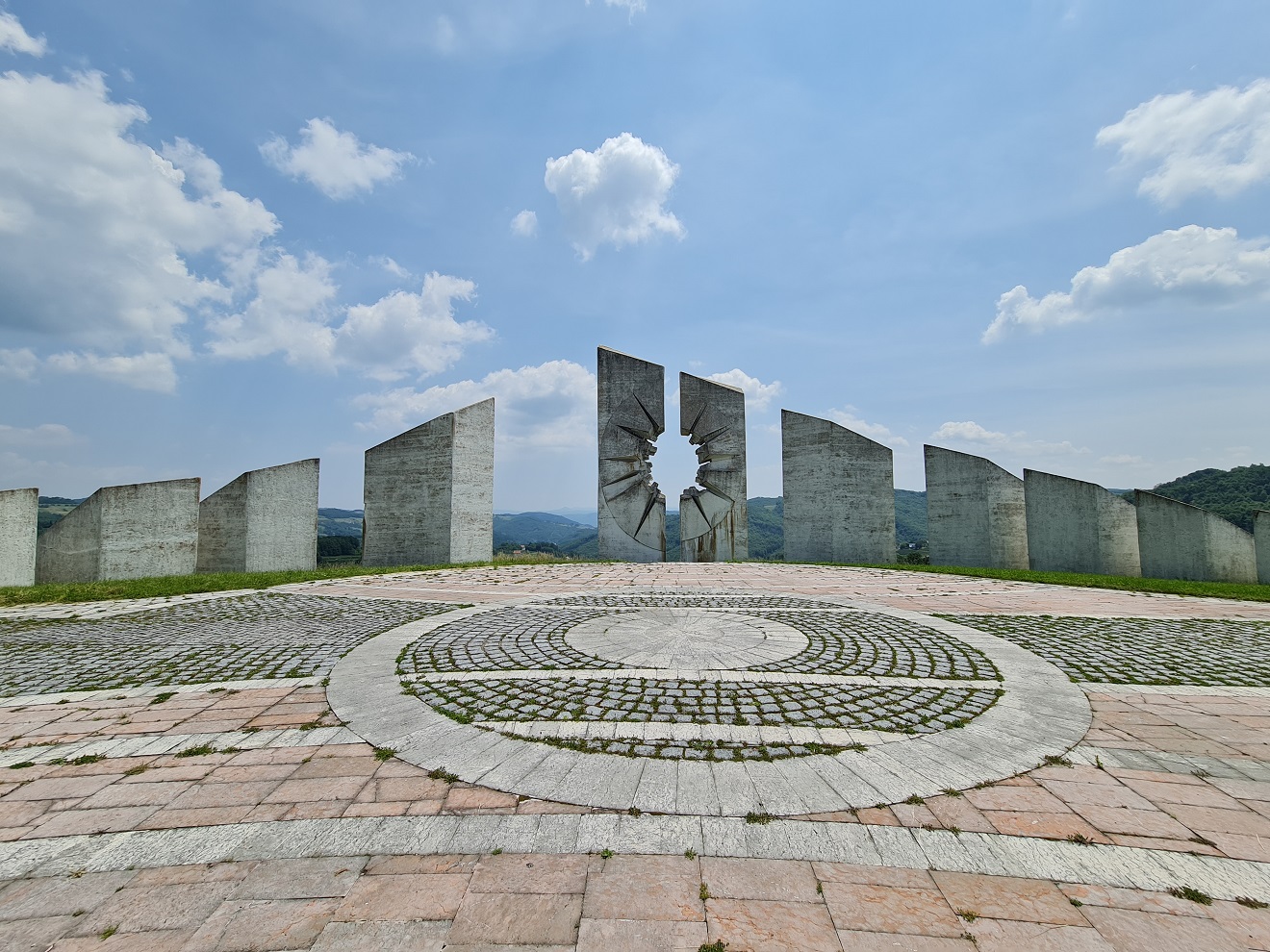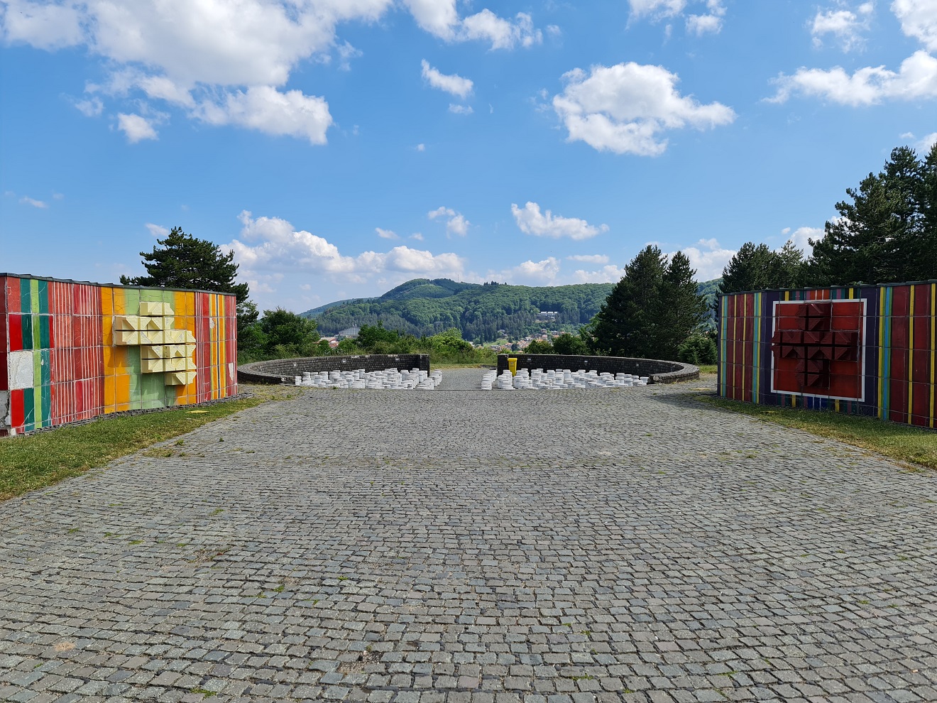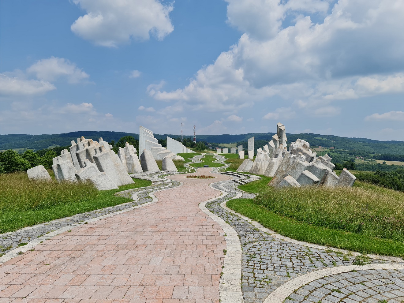 Druhou zastávkou, první v Kosovu, je památník UCK. V Mitrovici nejde nevyjít na vyhlídku nad město a nevyfotit si komunistickou zhovadilost, Spomenik palim rudarima NOB.
