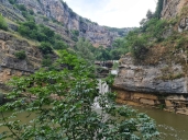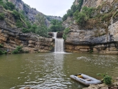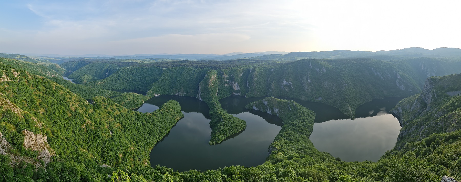 Probuzení do mlhy stoupající z řeky Uvac, která se brzy rozpustila a slunce začalo připalovat.