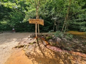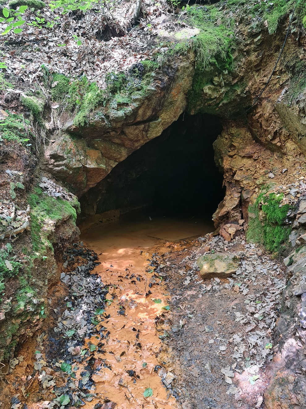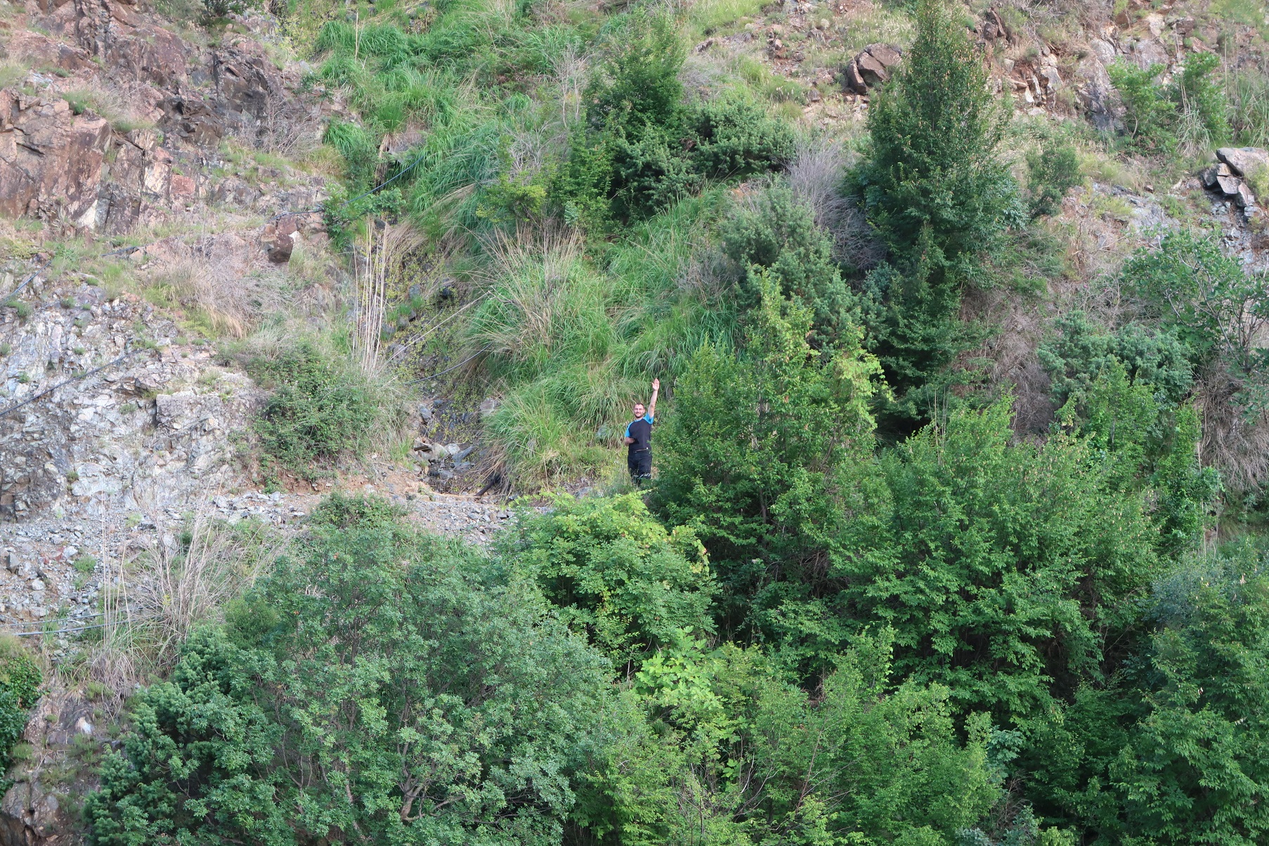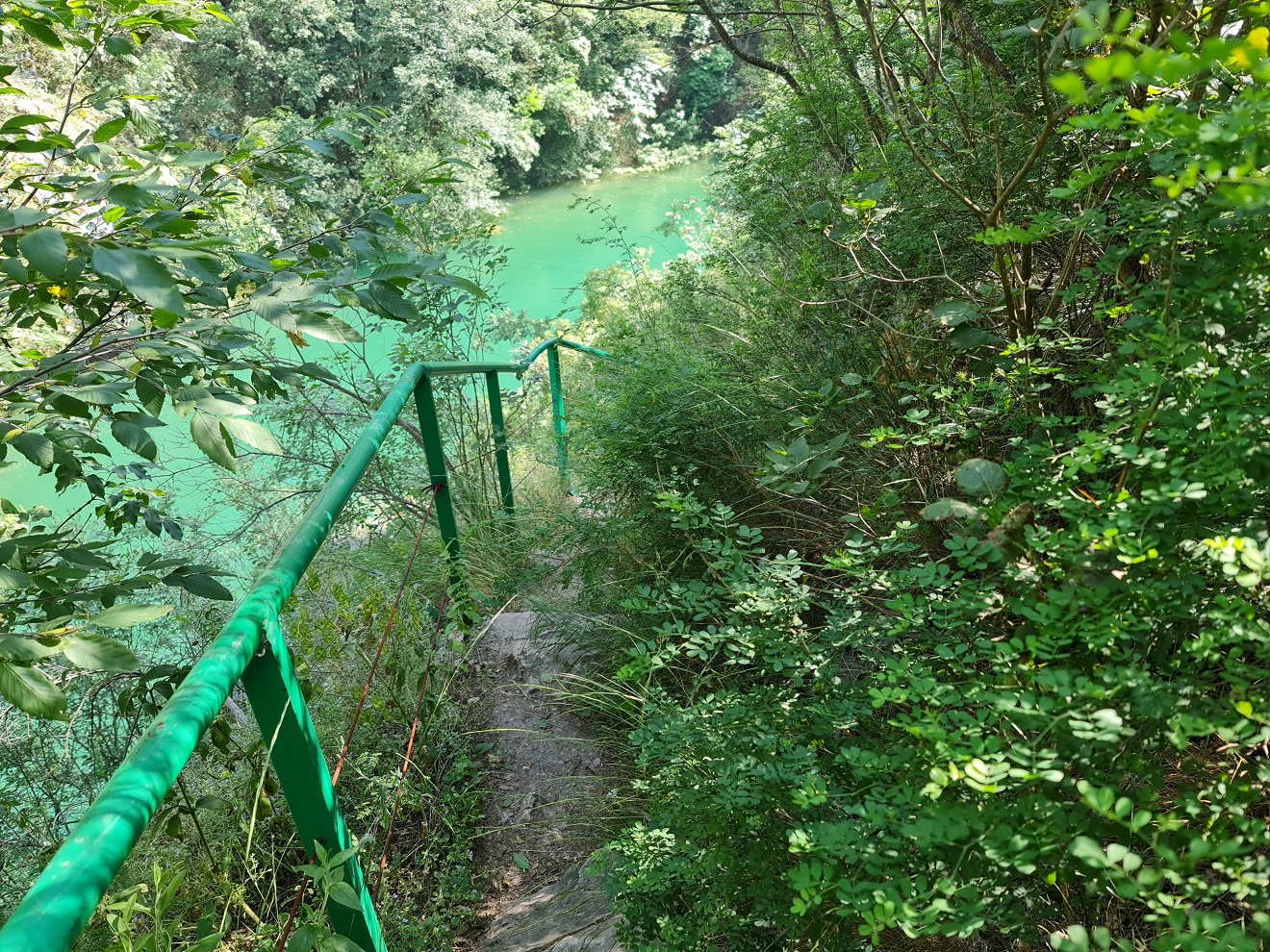 Čím dál od hráze, tím méně lidí potkáváme a pěšina je tím víc zarostlá. Na úrovni jeskyně pěšina končí, jenže jsme na protilehlém břehu.