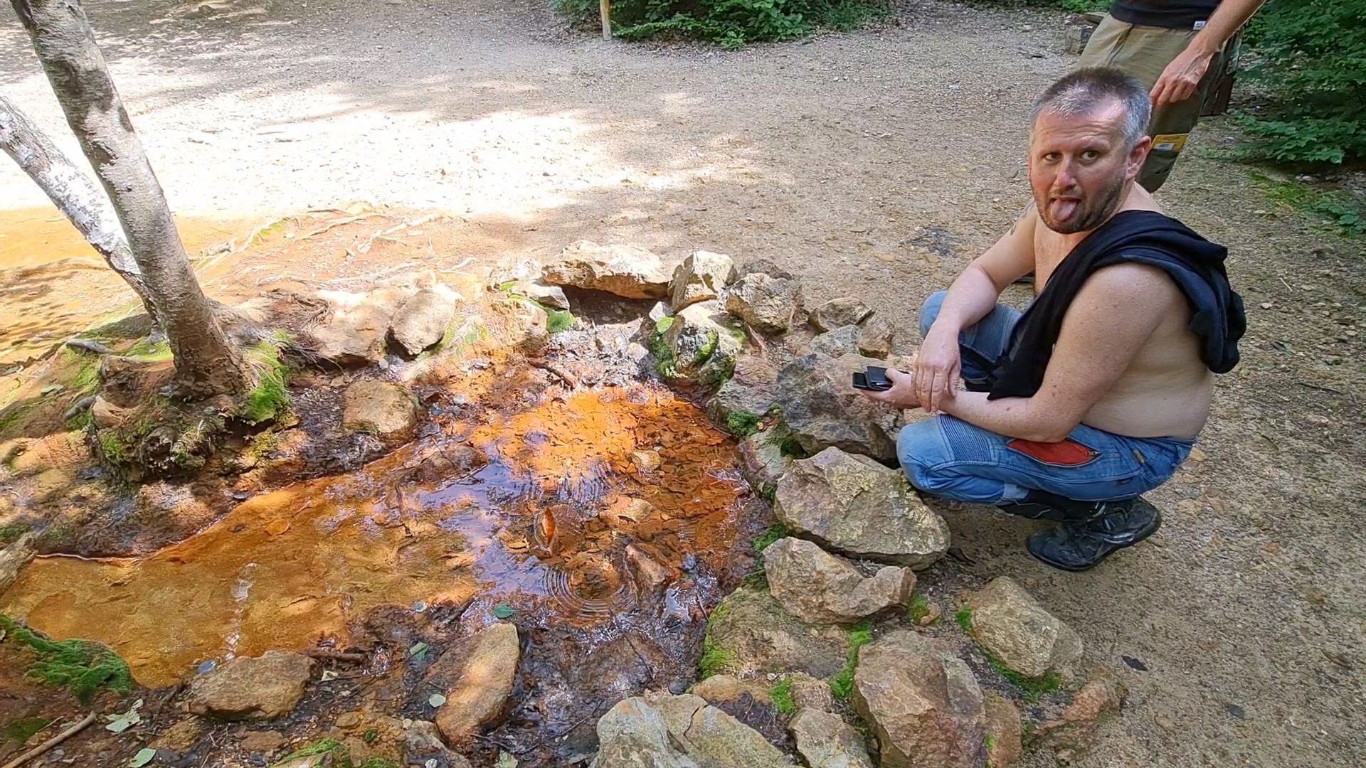 Ještě před předměstím se Milan je zeptat obsluhy u benzínky na nějaký tip. Mladík neví, úspěšnější jsme u party místních dělníků popíjejících kávu u stolu, prý za 5 km po levé straně.