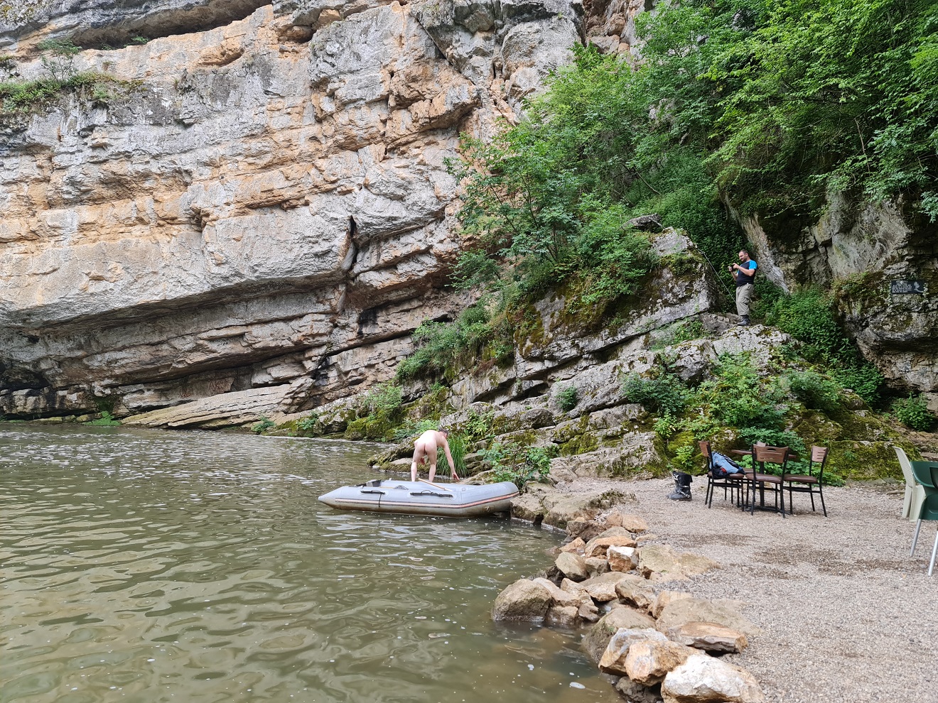 Nevzdáváme to, Milan pískne na dřímajícího lodníka v člunu desítky metrů pod námi. Ten zpočátku neví, odkud voláme, ale posléze se domluvíme na odvozu.