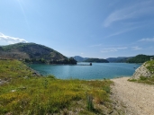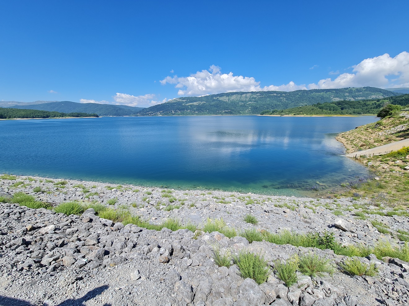 První zastávkou je pomocná hráz přehrady Mavrovo, na koupnání to není vzhledem k nadmořské výšce 1200 metrů.