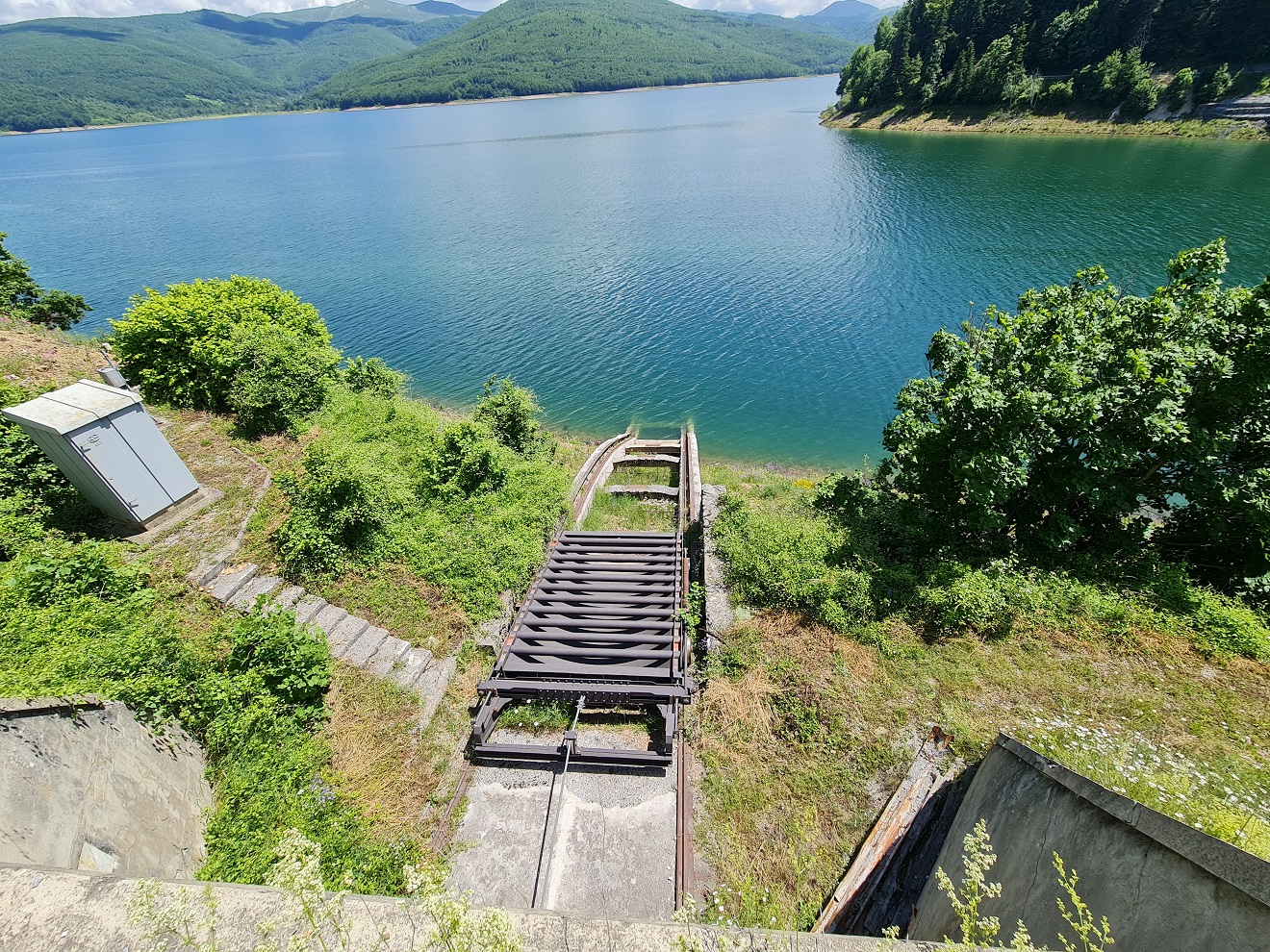 Vracíme se dolů k přehradě Mavrovo, ke hrázi s elektrárnou a památníkem stavařům celého díla.