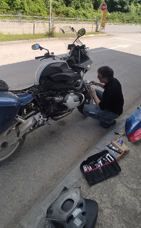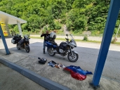 Jako bonus mě a Márovi zkontrolují tlaky a mě dofouknou. Můžeme bez obav pokračovat v cestě.