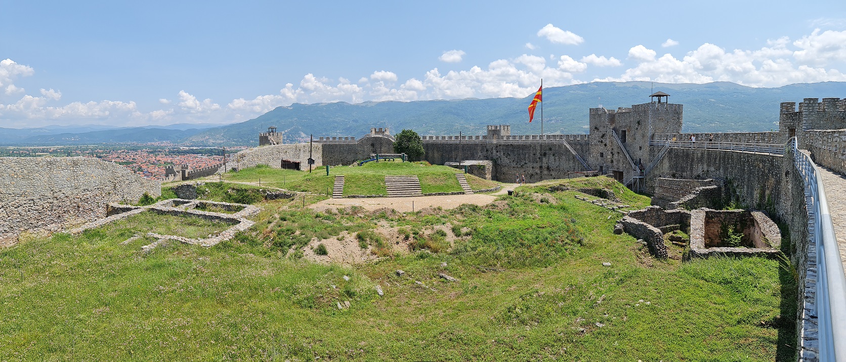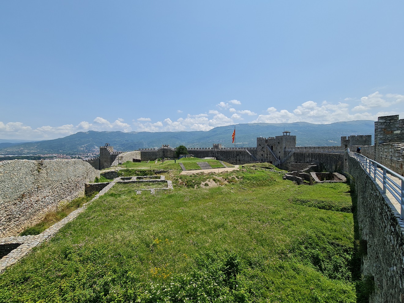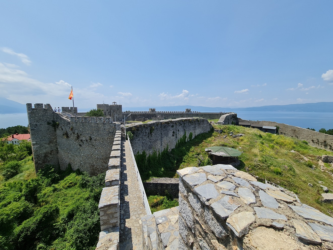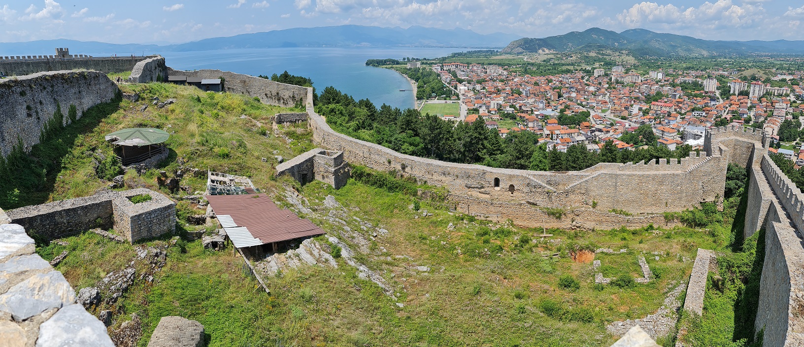 Projdeme Samuelovu pevnost, nakoukneme do klášter svatého Klimenta a Pantelejmona, v café "Baptisterium" občerstvíme se espressem a zmrzlinou.
