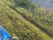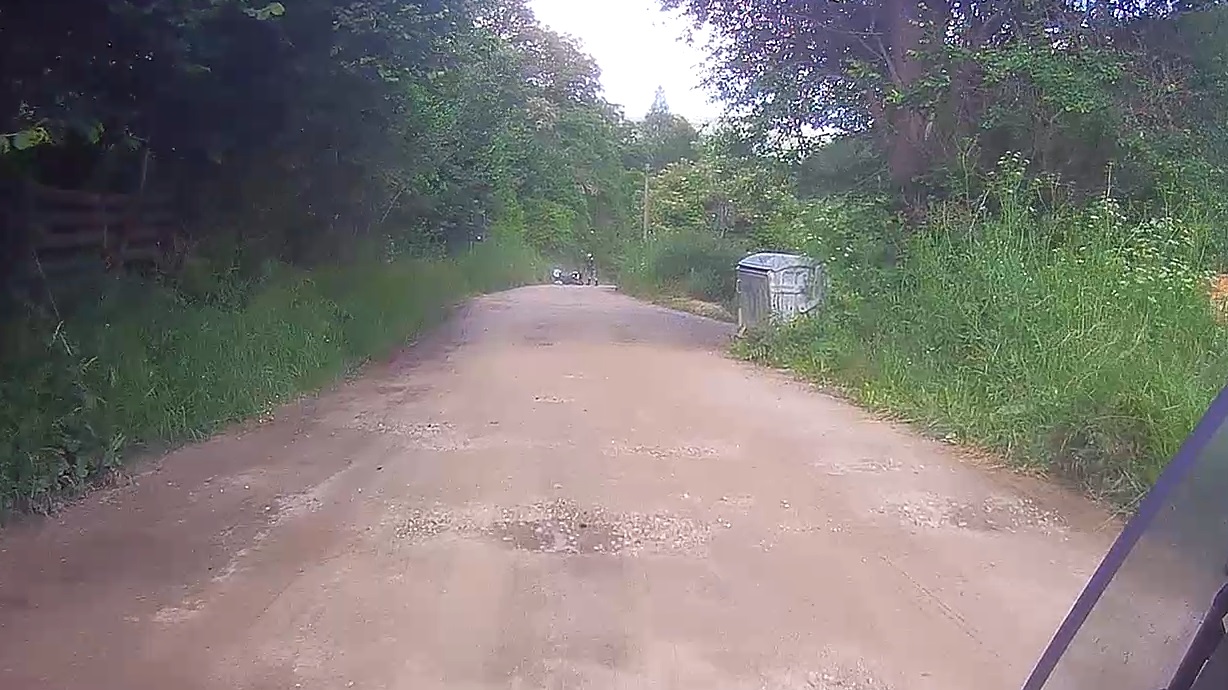Stoupání i klesání po šotolině projedeme bez nejmenších potíží, až na rovném úseku skoro na konci Milan vyjede do trávy a vystoupí z motorky elegantním saltem. I tuto událost máme zvěčněnou díky záznamům na kamery.