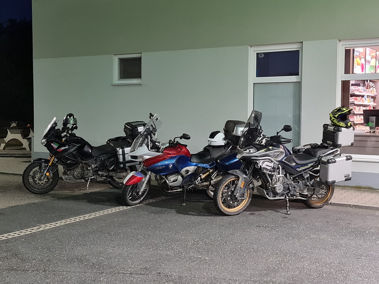 Domluvený sraz na sedmou ranní u PETROL čerpačky v Davli, dojíždím se zpožděním. Motorka mi hlásí chybu "LAMPF" = lamp front, i když obě LED žárovky ještě svítí.