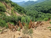 První dnešní zastávka je Đavolja Varoš, písečné pyramidy. Přechod hranice do Kosova i s nákupem kosovského povinného ručení za €10 je bez průtahů, rychlý.