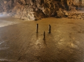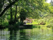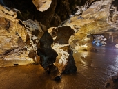 Nahodí motor, přirazí k našemu břehu, po nastoupení čtvrthodinku čekáme na skupinu vracející se z jeskyně a pohodlně se necháme odvézt zpět ke hrázi.
