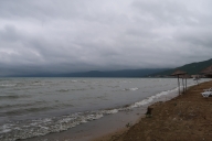 Sice se uvnitř svítí, ale je zavřeno, sezóna ještě nezačala. Chytám Wi-Fi signál z hotelu s heslem od loňska a najdeme náhradní bydlení na stejné promenádě u jezera Ohrid.