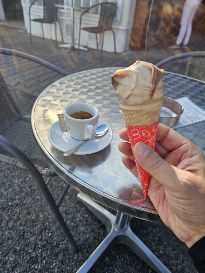 Na domluvený sraz u zmrzliny v Davli přijíždím první, několik minut před půl čtvrtou, půl hodiny před domluveným časem.