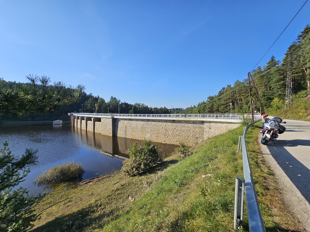Nemám dobrý pocit z rychlejší jízdy v náklonu, po "povinné" fotce u Temelína nechávám od další zastávky u Stádleckého řetězového mostu ostatní jet domů jejich tempem a sám se opatrně ploužím domů.